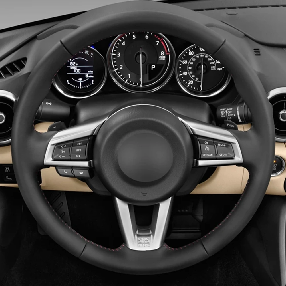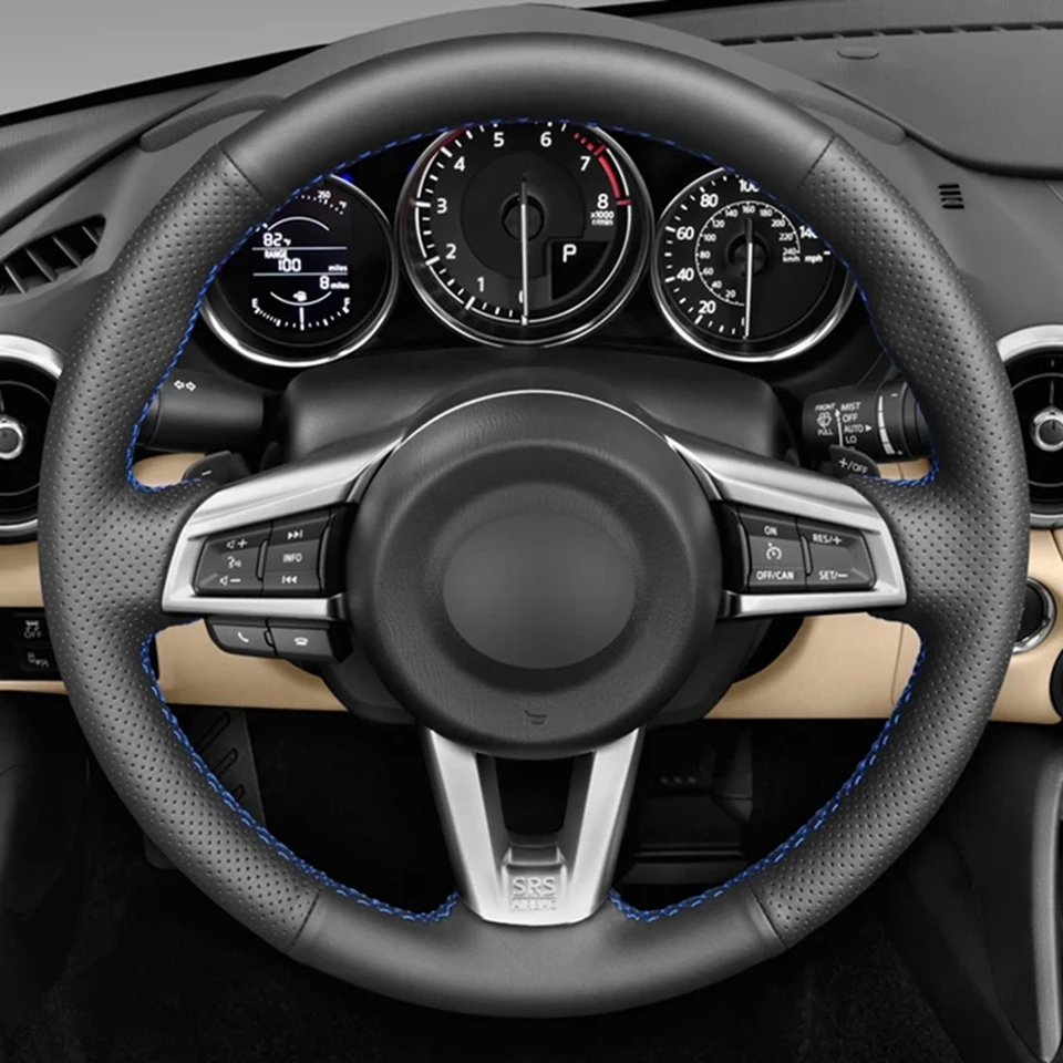 Сшитая вручную Нескользящая черная искусственная кожа для Mazda MX5 чехол рулевого колеса автомобиля 2016 2017 2018 2019