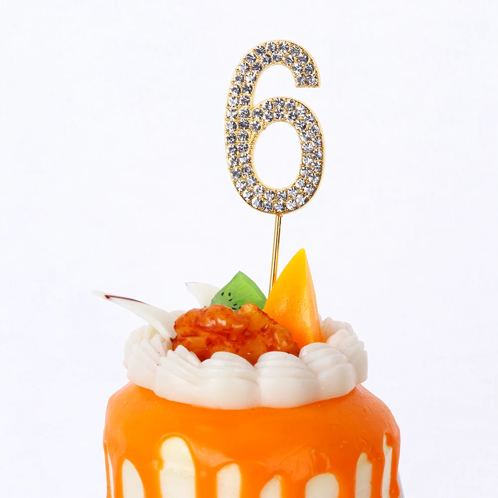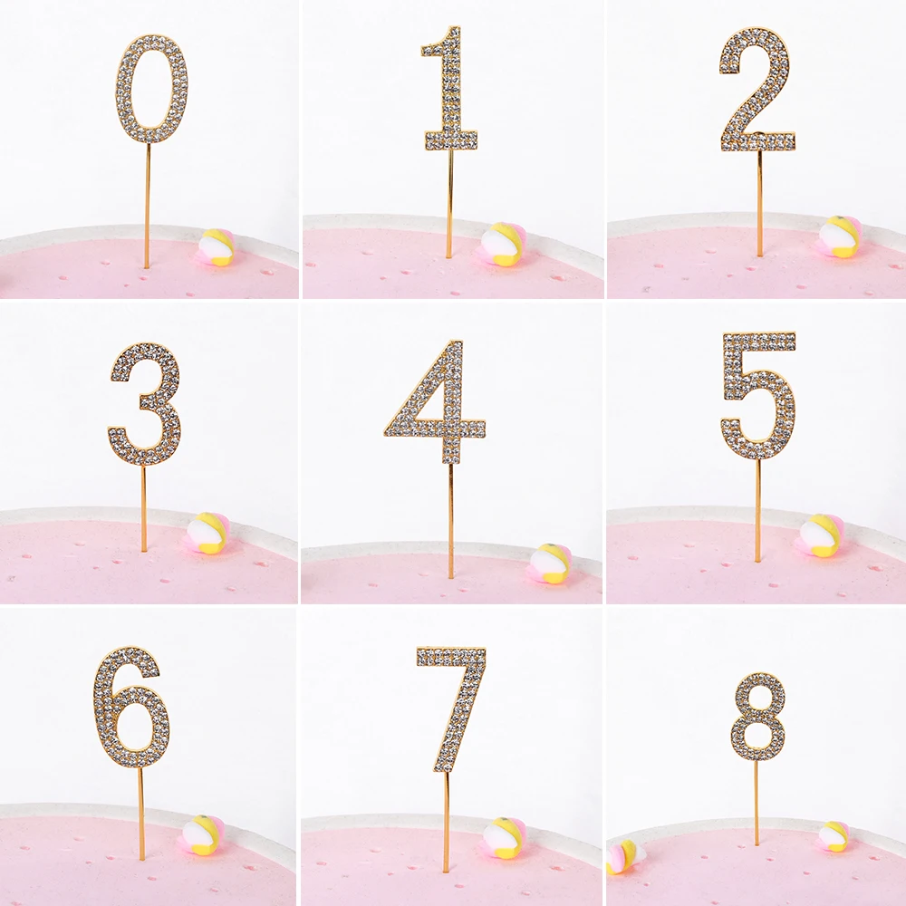 Топпер для торта с цифрами 0-9, золотой, украшенный бриллиантами, д...