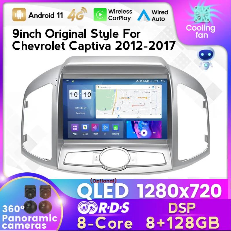 Автомагнитола QLED, мультимедийный видеоплеер на Android No 2 Din, 8 ГБ + 128 ГБ, IPS HD, для Chevrolet Captiva 1 2011 - 2016