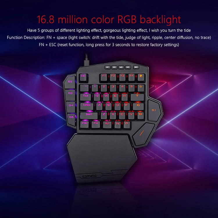 K585 RGB 42-клавишная Механическая игровая клавиатура для одной руки, синий переключатель, 7 программируемых макросов для игр, ноутбука, ПК, телефона
