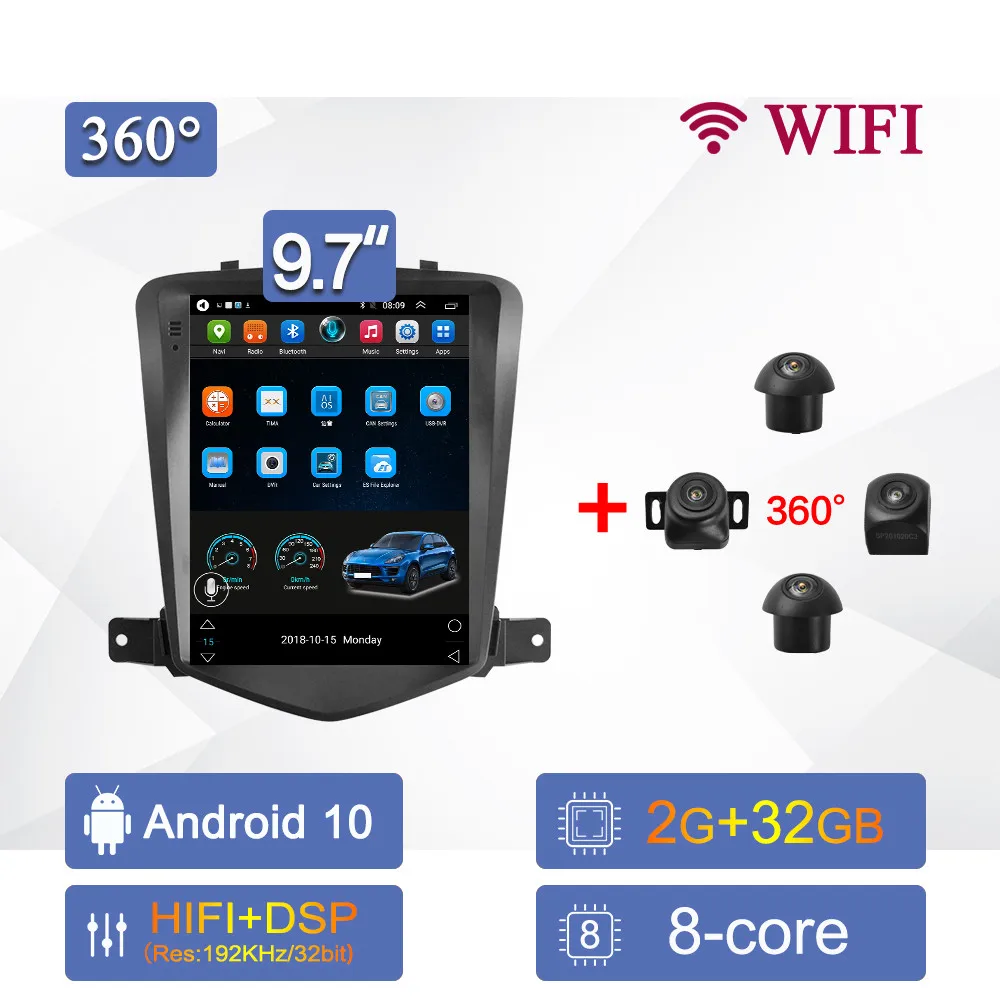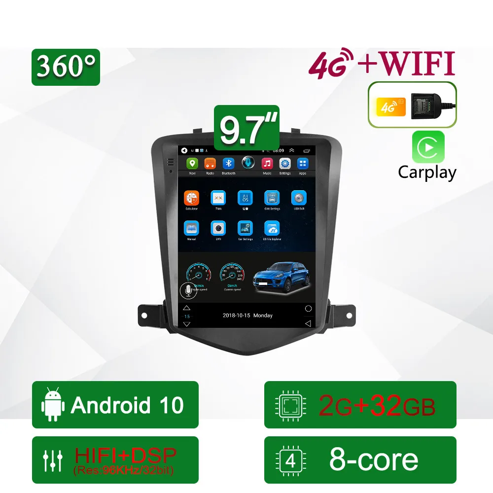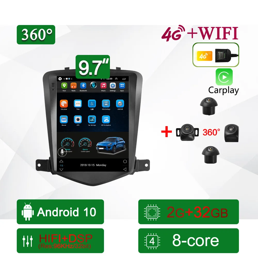 Автомагнитола 2 din для Chevrolet Cruze J300 360-2008 с GPS-Навигатором, 4G, Android 10