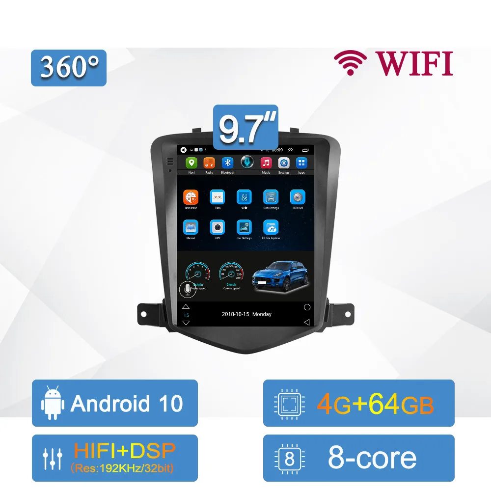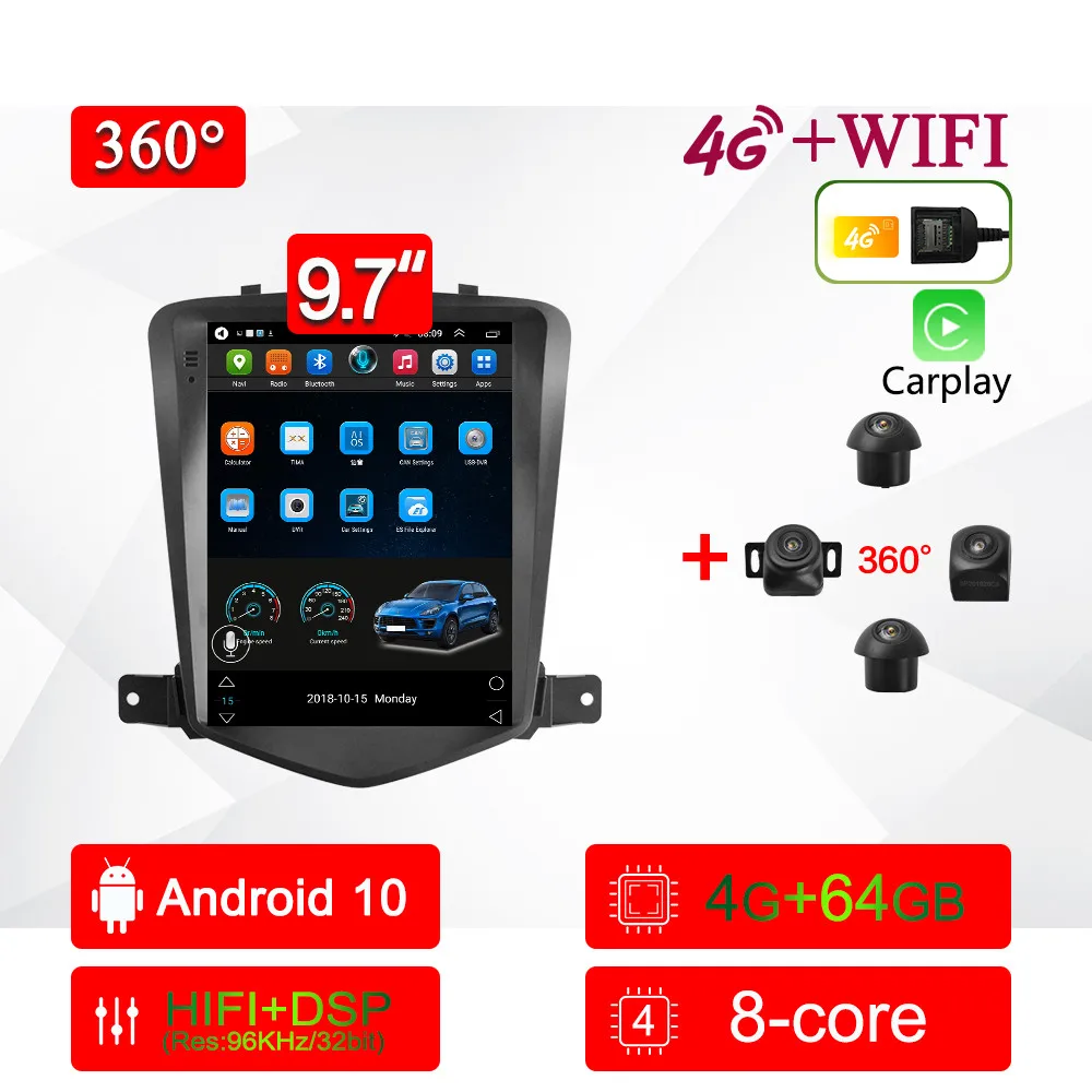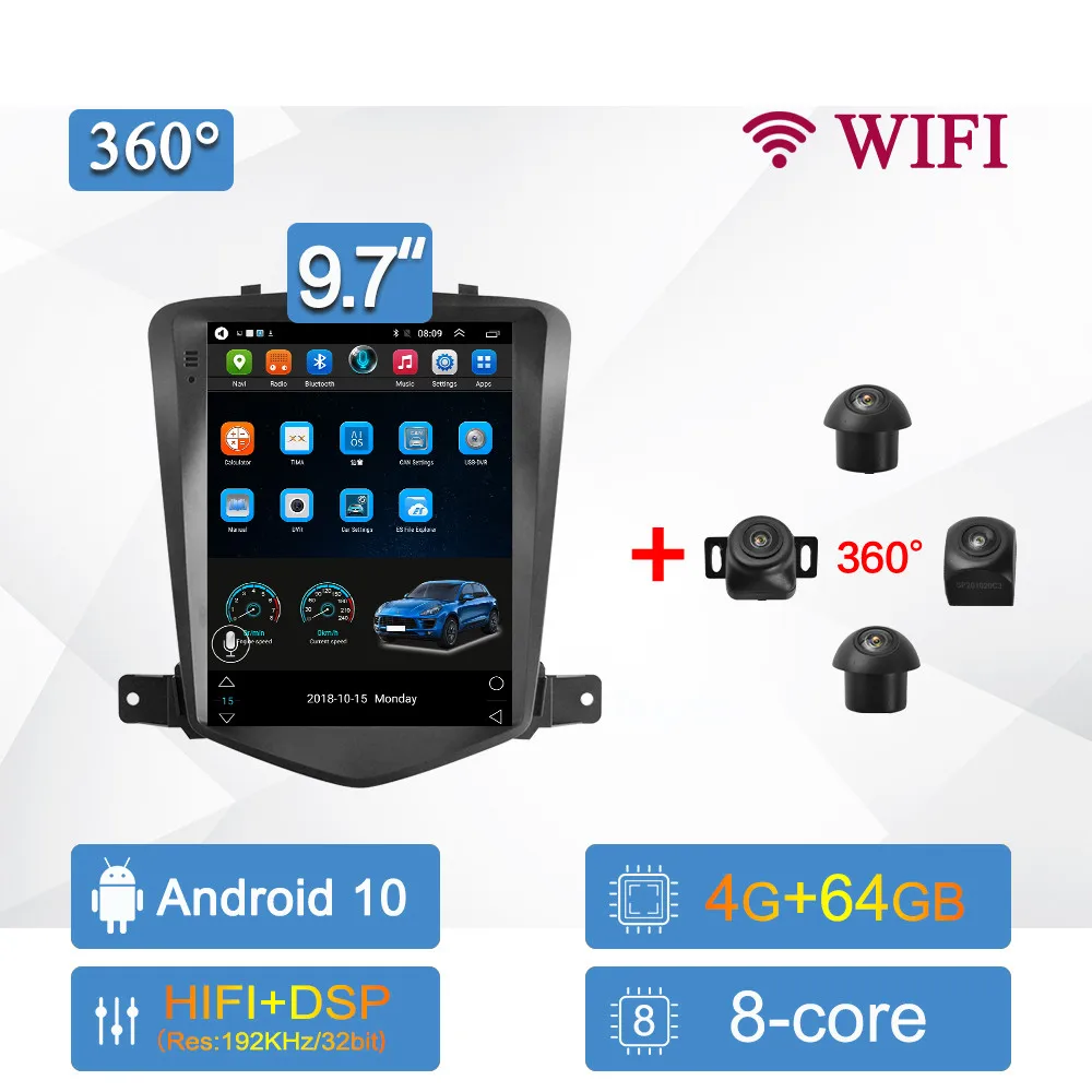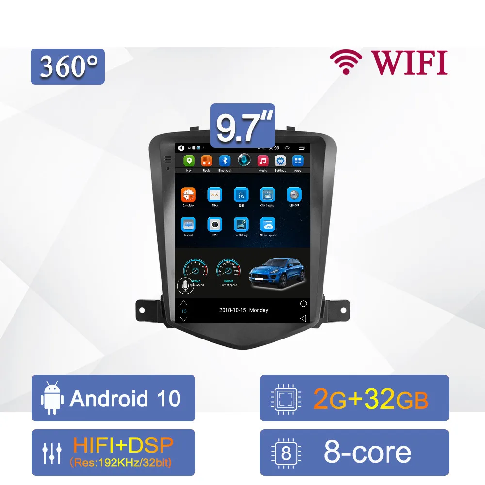 Автомагнитола 2 din для Chevrolet Cruze J300 360-2008 с GPS-Навигатором, 4G, Android 10