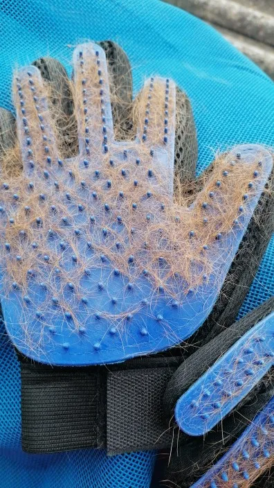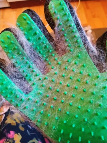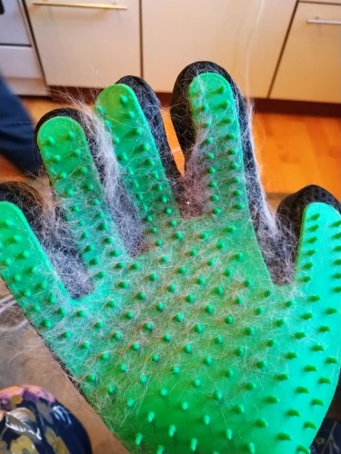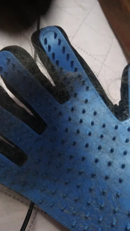 Классная перчатка, собирает много шерсти, кошка вытягивается от удовольствия.