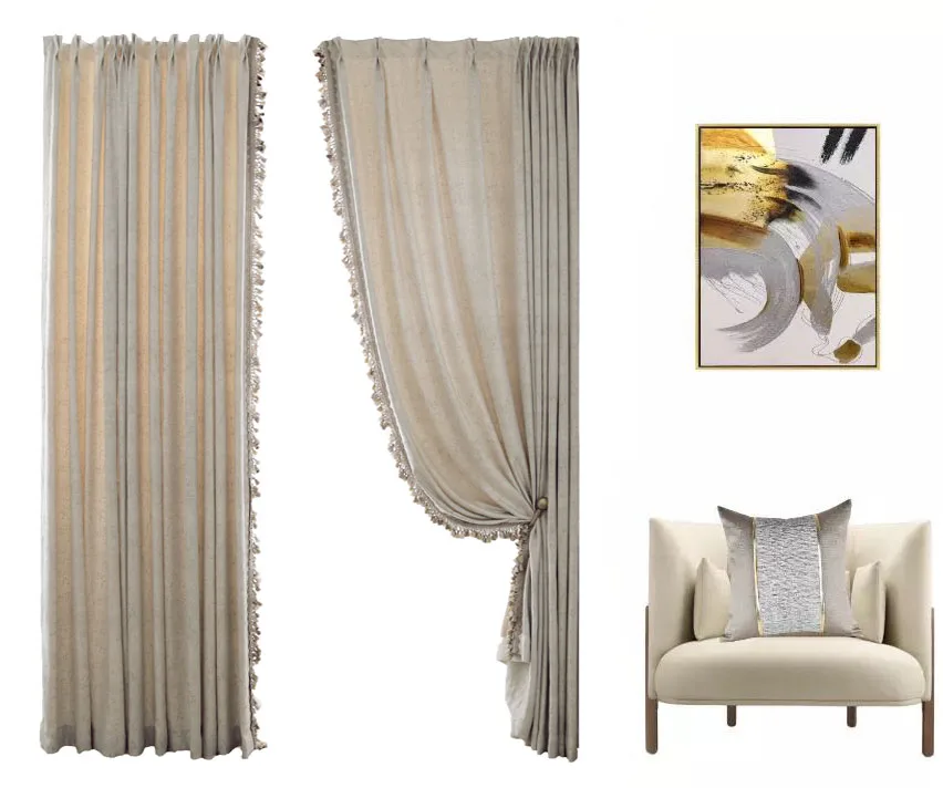 Роскошные шторы в скандинавском стиле, шторы из хлопка и льна в пол...