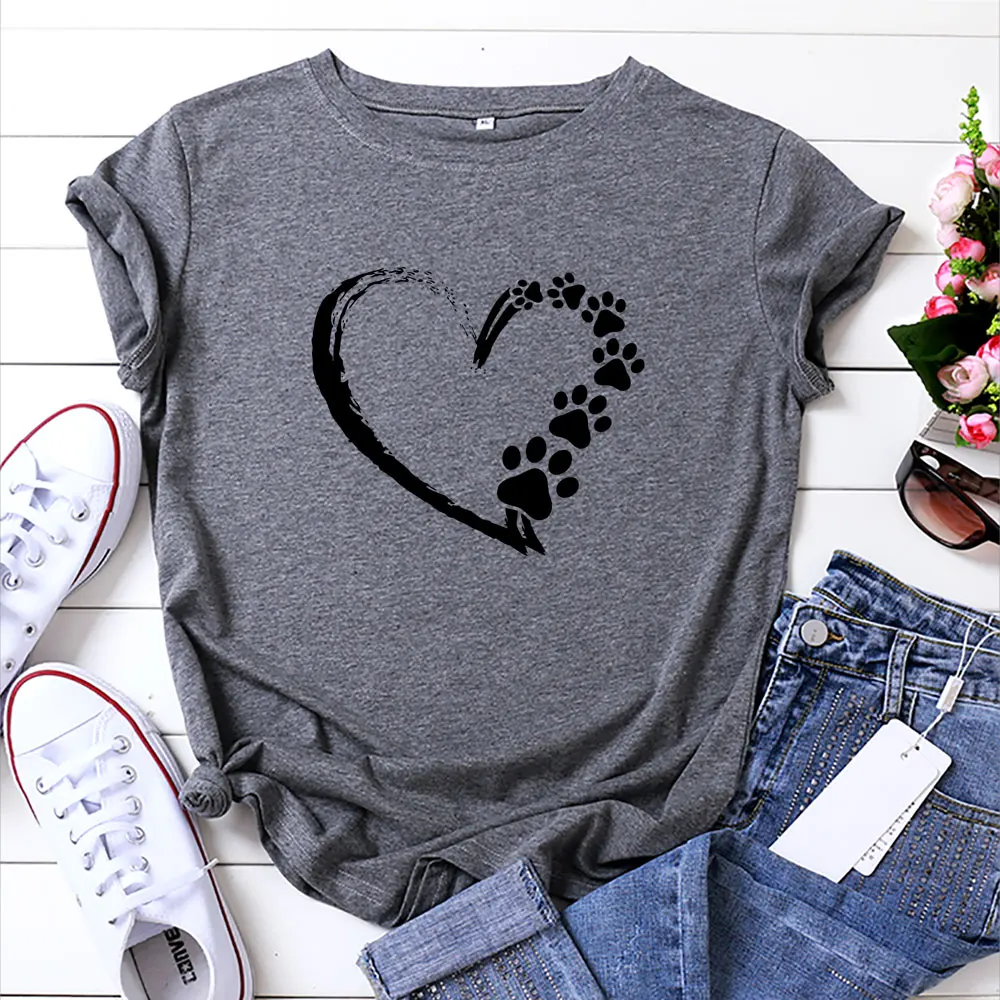 Женская футболка с круглым вырезом, коротким рукавом и принтом