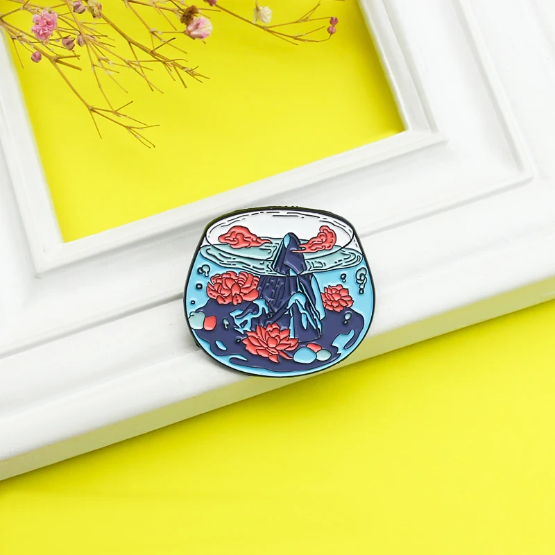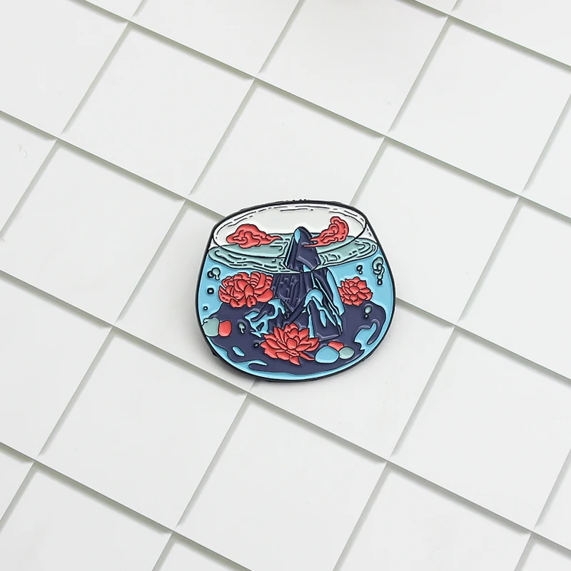 Эмалированная брошь Rockery в виде аквариума, Модная креативная брошь с красным лотосом, облаком, булавкой на лацкан, рюкзак, джинсовый значок на заказ