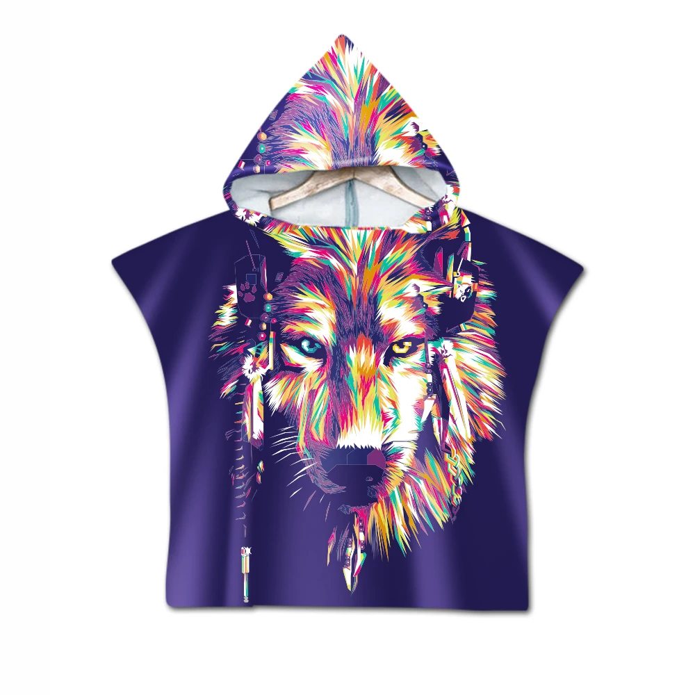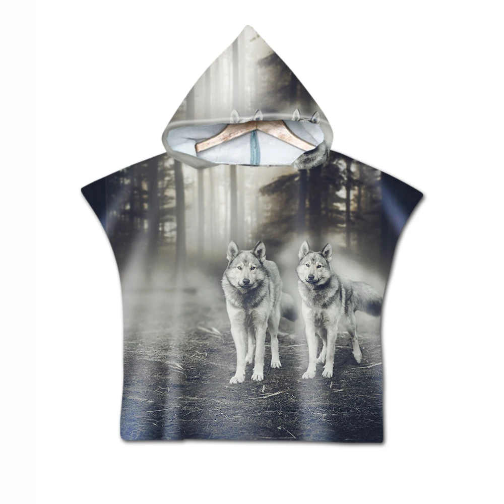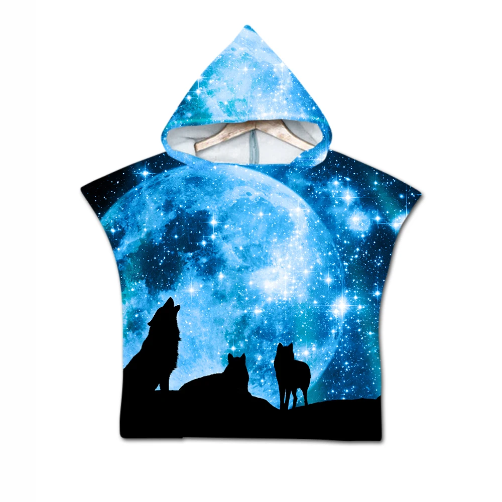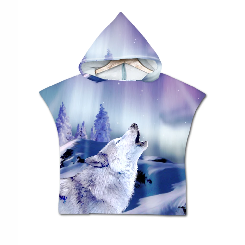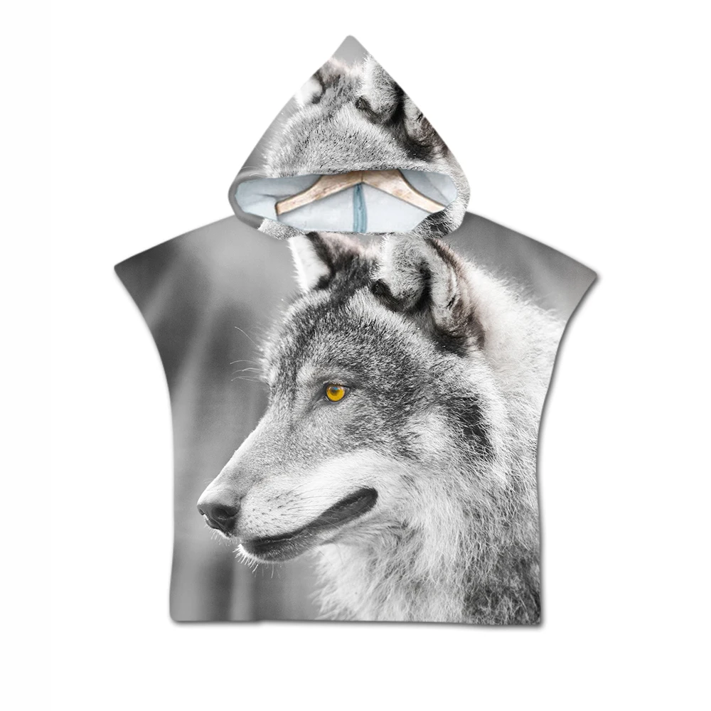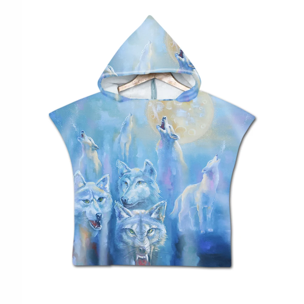 Пляжное полотенце с 3D принтом в виде рыбьей чешуи, волка с Луной, детское банное полотенце с капюшоном, мягкое банное полотенце для маленьких мальчиков и девочек