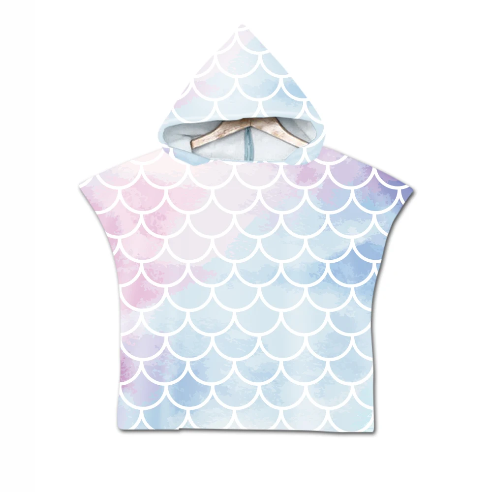 Пляжное полотенце с 3D-принтом рыбьих чешуек и луной, детское банное полотенце с капюшоном, мягкое банное полотенце для маленьких мальчиков и девочек
