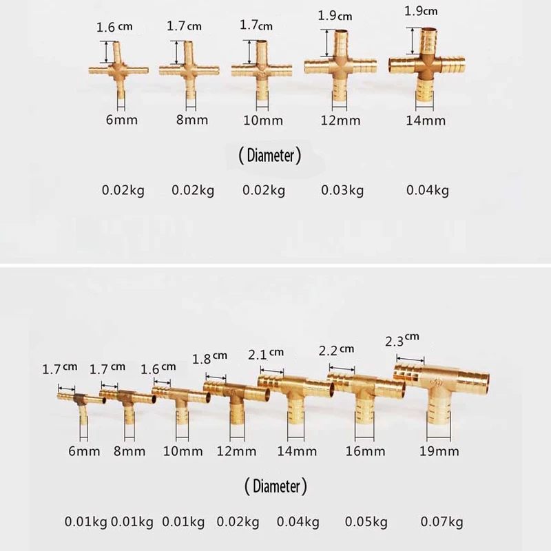 Латунный фитинг для труб с зазубринами, 2, 3, 4-ходовой латунный соединитель для 4 мм, 5 мм, 6 мм, 8 мм, 10 мм, 12 мм, 16 мм, 19 мм, фитинги для шланга, медной пагоды, трубы для воды