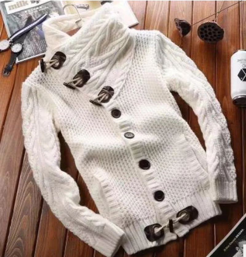 Свитер Zogaa мужской зимний, плотный теплый кардиган с высоким воротником, повседневный облегающий однотонный вязаный свитер, пальто, мужские трикотажные изделия с роговыми пряжками, 3XL