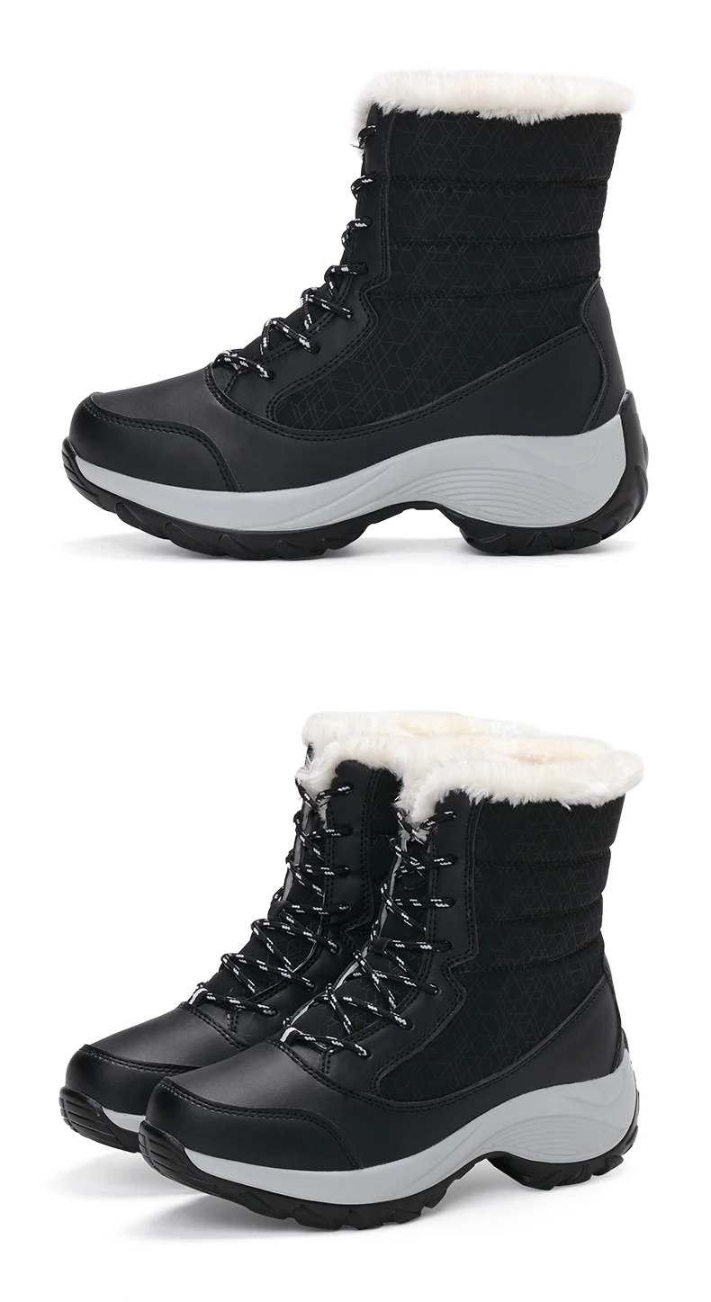 Ботинки женские зимние, теплые, водонепроницаемые, со шнуровкой
