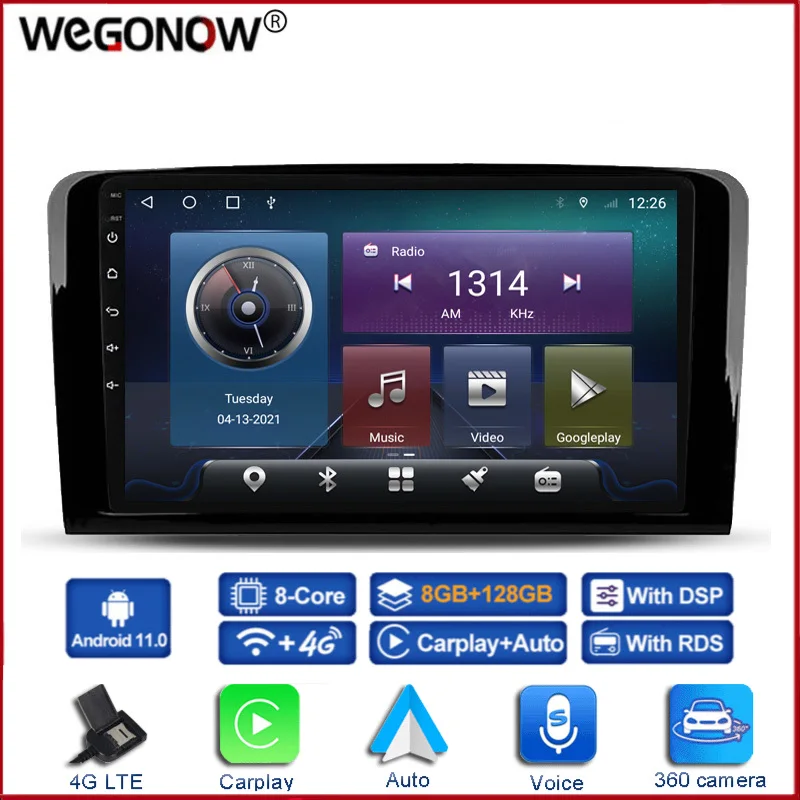 Автомобильный DVD-плеер Carplay DSP Android 360, 8 ГБ + 128 ГБ, GPS-карта, Wi-Fi, Bluetooth 11,0, RDS радио для Benz ML M-Class W164 GL-Class X164