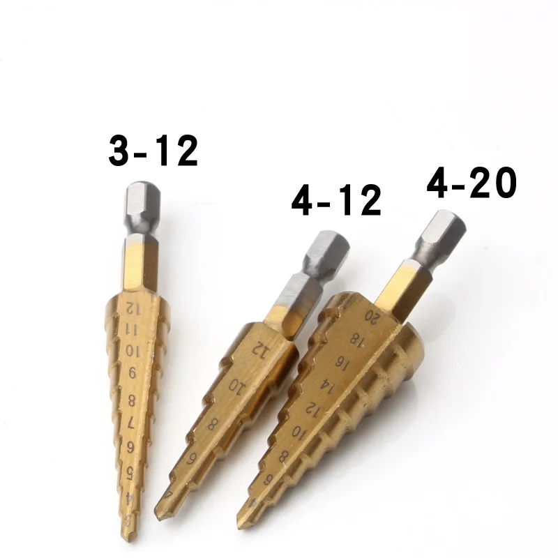Ступенчатое сверло 3-12 мм 4-12 мм 4-20 мм, быстрорежущий инструмент с прямым желобом и титановым покрытием для дерева и металла, набор корончатых бит