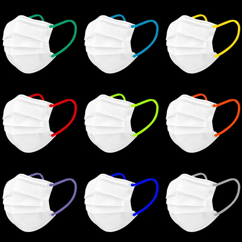 10PCS/Bag Disposable Masks White Contrast Color Earband Masks 3-layer Melt Blown Fabric Face Mouth Mask Breathable Mascarillas