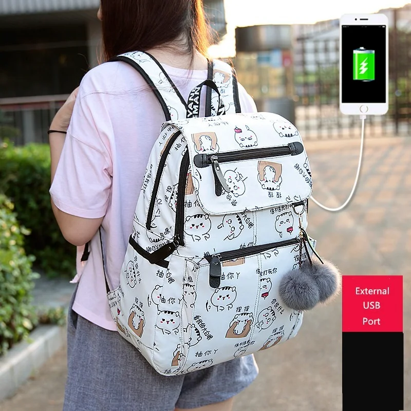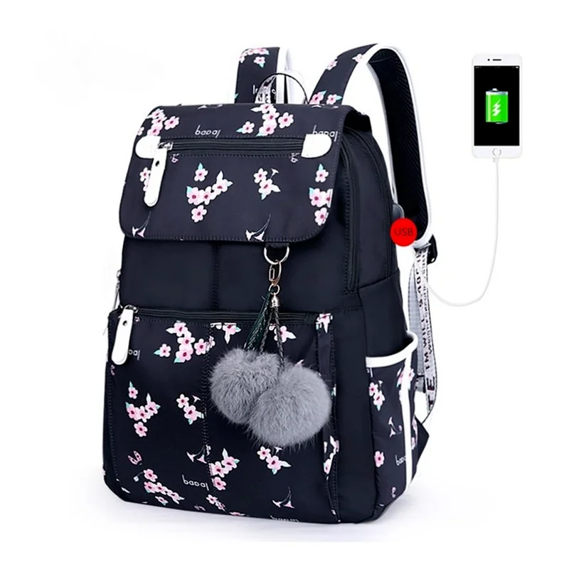 Женский рюкзак для ноутбука, usb сумка, детские рюкзаки, милый черный школьный рюкзак для девочки-подростка