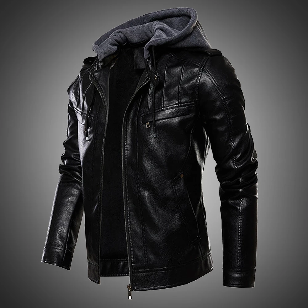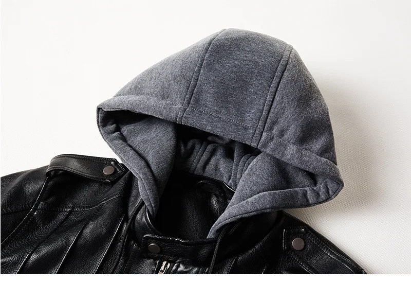 Мужская куртка из искусственной кожи, пальто с капюшоном, с меховой подкладкой, мотоциклетная куртка, модное пальто, осенне-зимнее пальто размера плюс 4XL 5XL