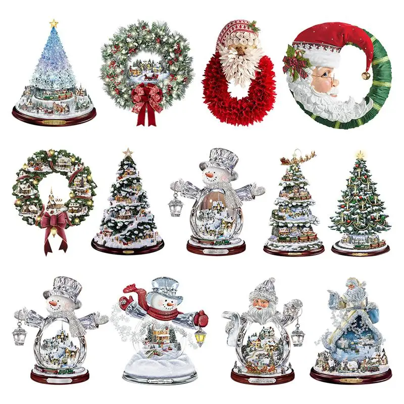 3D наклейки в виде рождественской деревни, наклейки в виде снеговик...