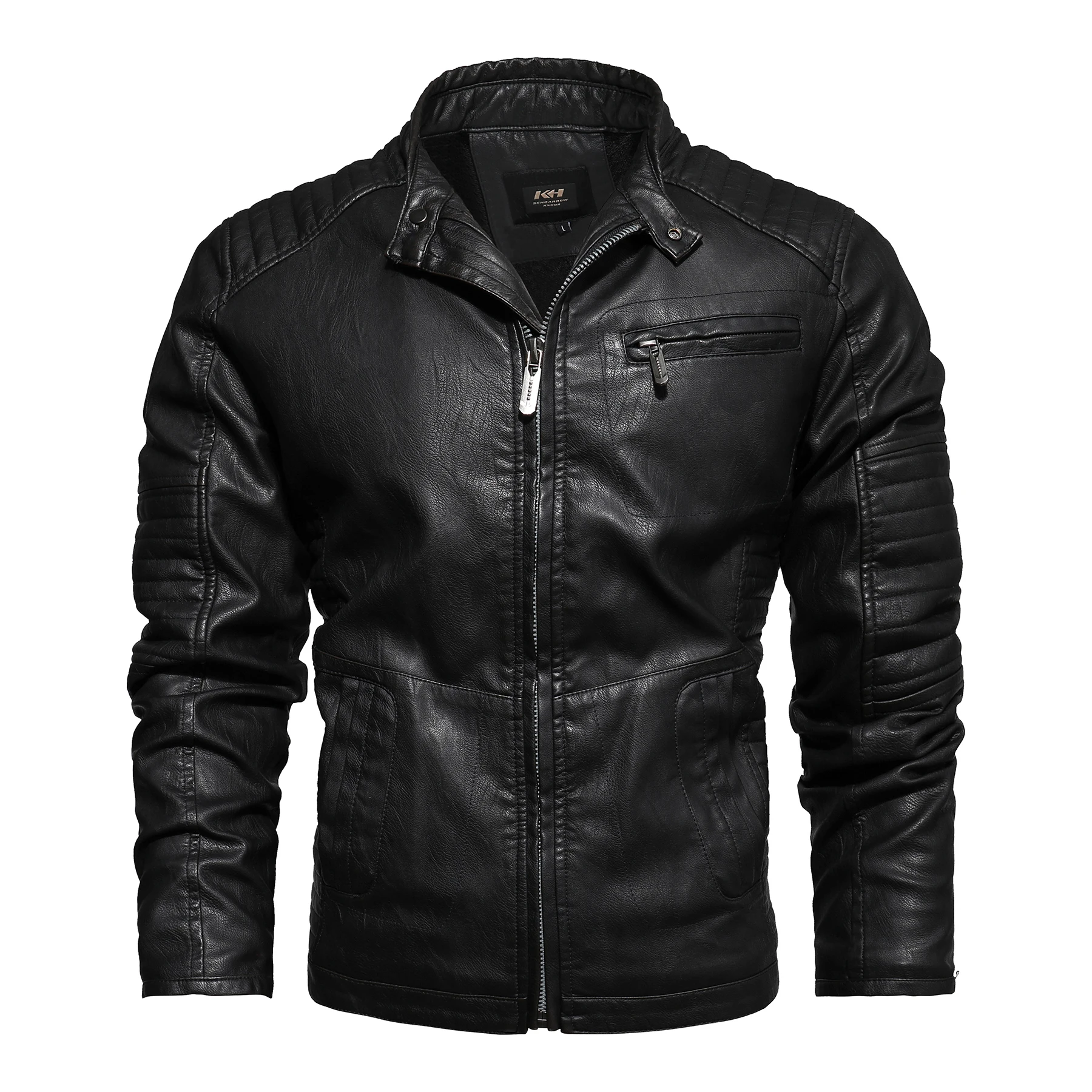 Мужская байкерская куртка из ПУ кожи, с флисовой подкладкой и воротником-стойкой