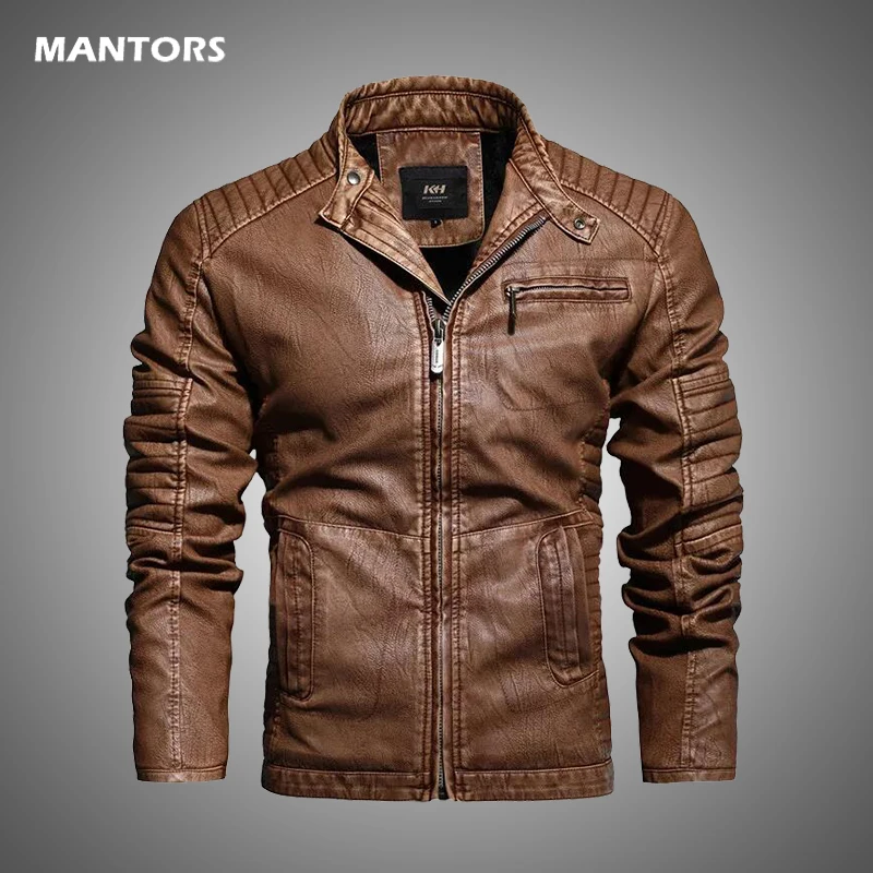 Мужские Винтажные куртки на молнии, Куртки из искусственной кожи в ...