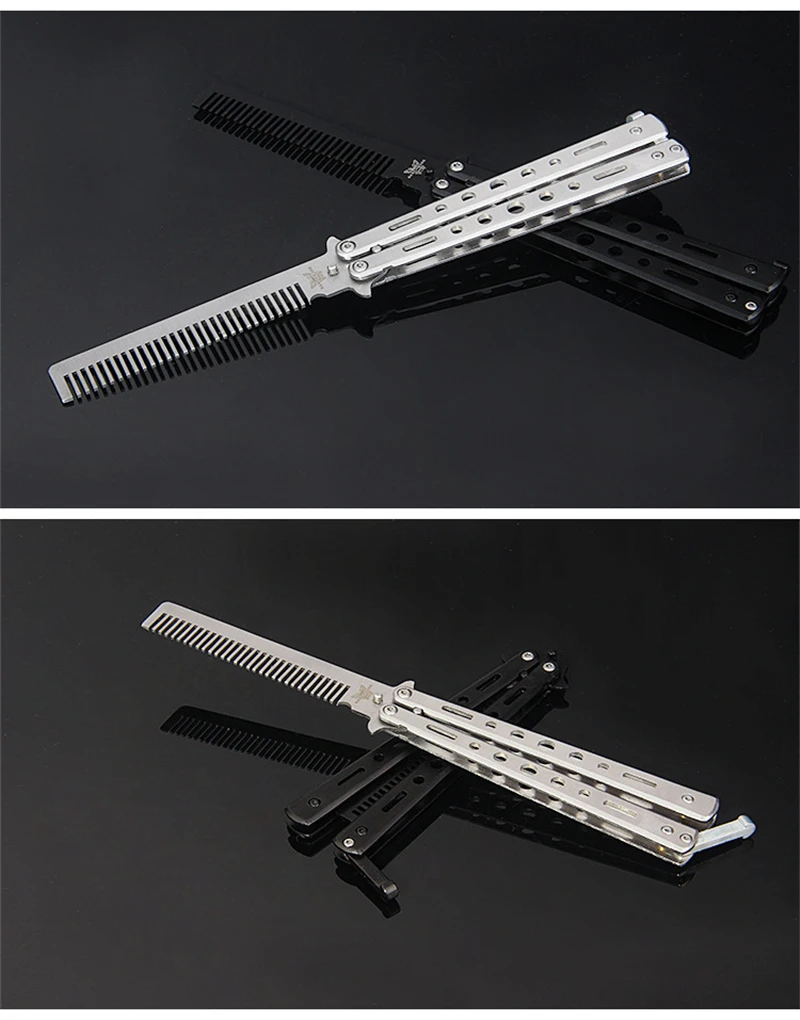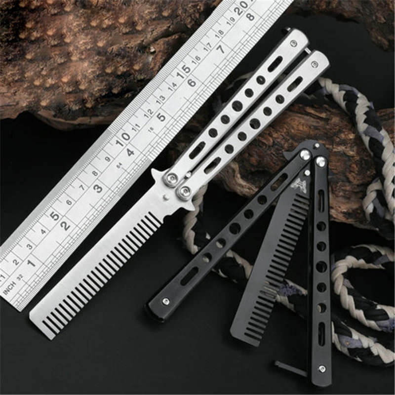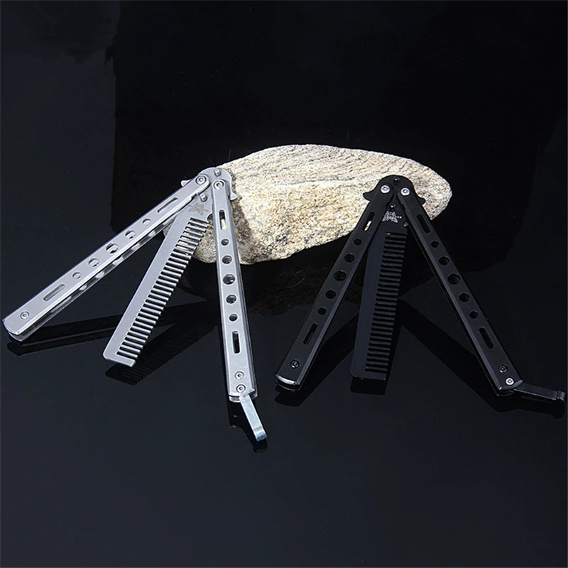 Складная расческа из нержавеющей стали, тренировочный нож-бабочка, расческа для бороды, усов, инструменты для укладки