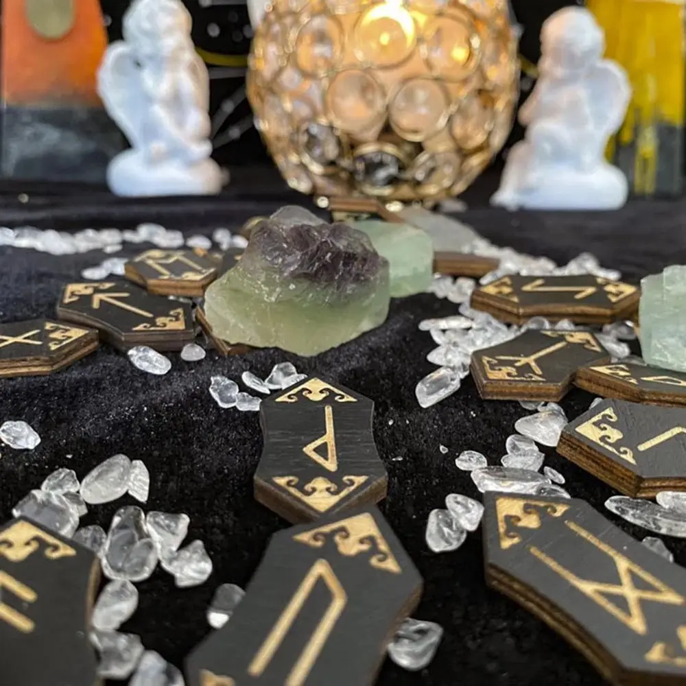 Руны имеют 24 символа, плюс пустой символ гадания, который представляет возможность и непредсказуемую возможность в жизни. Итак, всего 25 рун.