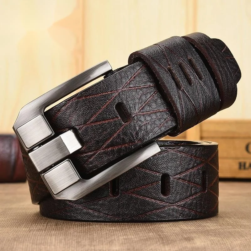 Ремень мужской из натуральной кожи с лазерной гравировкой и пряжкой