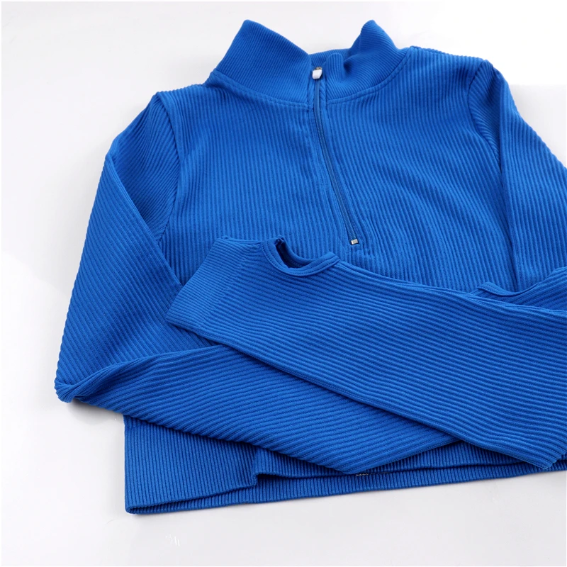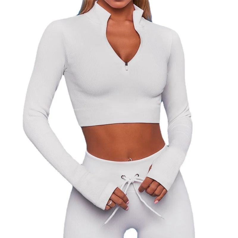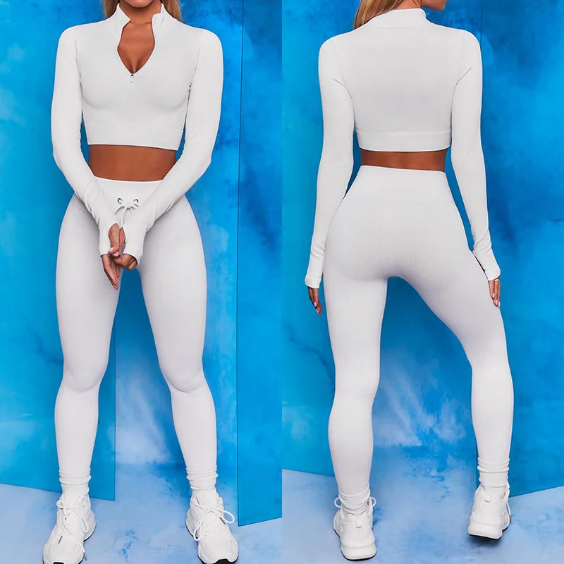 Женские комплекты для йоги Feamle, бесшовный комплект из 2 предметов, короткий топ на молнии, рубашка с длинным рукавом, леггинсы, спортивная одежда для тренировок и фитнеса, комплект для спортзала
