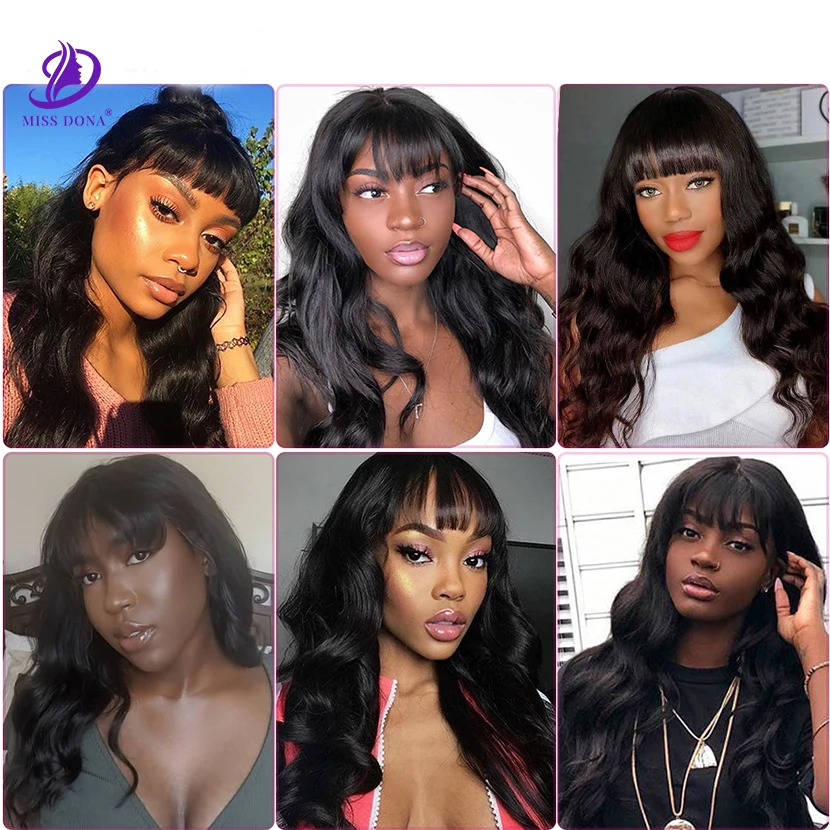 Парик Miss Dona с короткими волосами, машинная работа, с челкой, для темных женщин