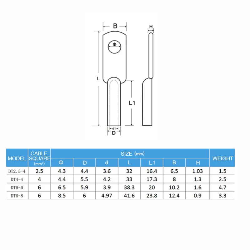 5 шт., медный терминал DT2.5-4, DT4-4, DT6-6, DT6-8, оловянный, 4, 6, 8 DTG Кабельный разъем