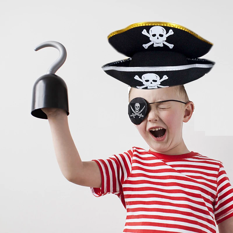 Черная пиратская шляпа раньше Пиратская повязка на глаза сделай сам украшение на Хэллоуин принт черепа для детей и взрослых Косплей вечерние ринка Декор реквизит для стрельбы