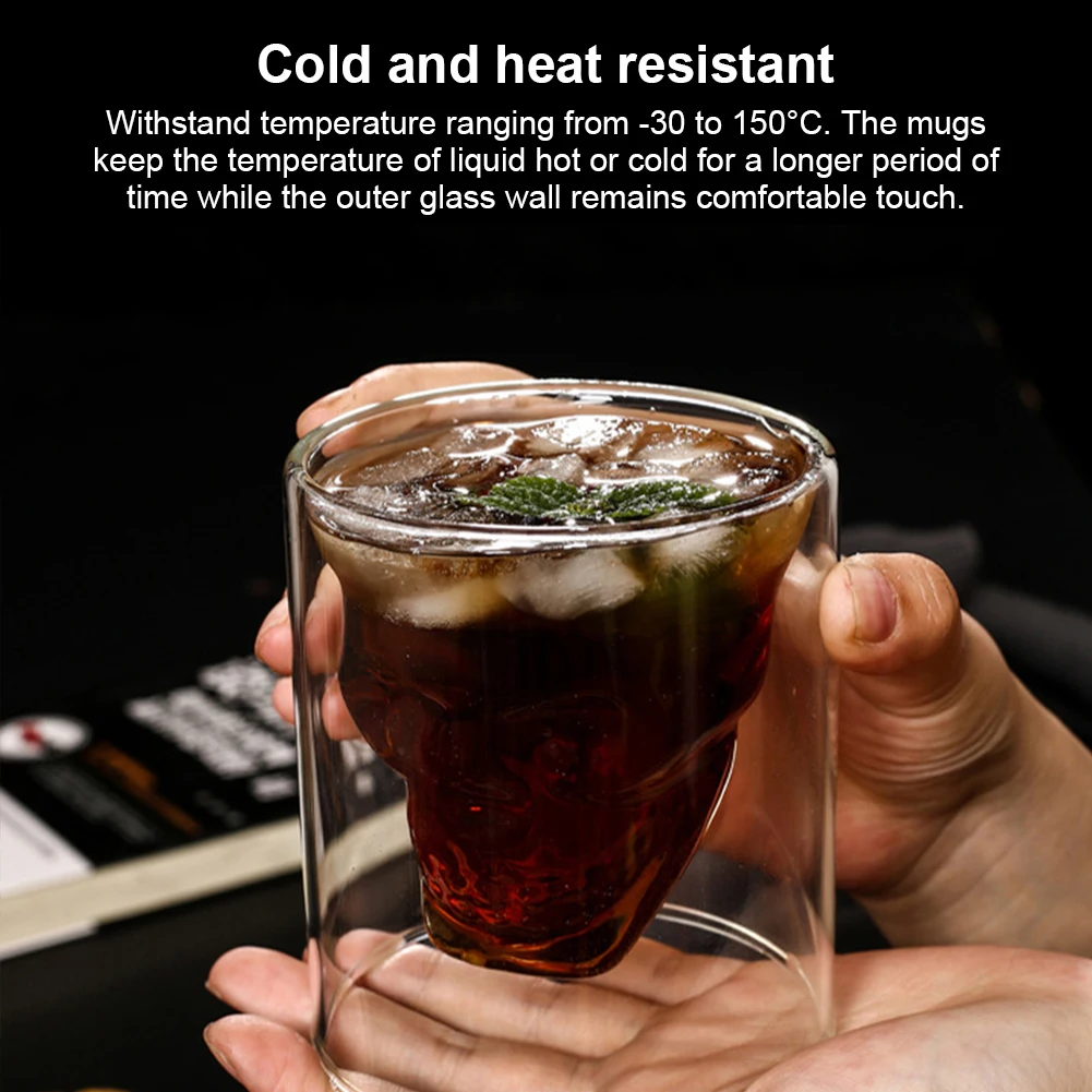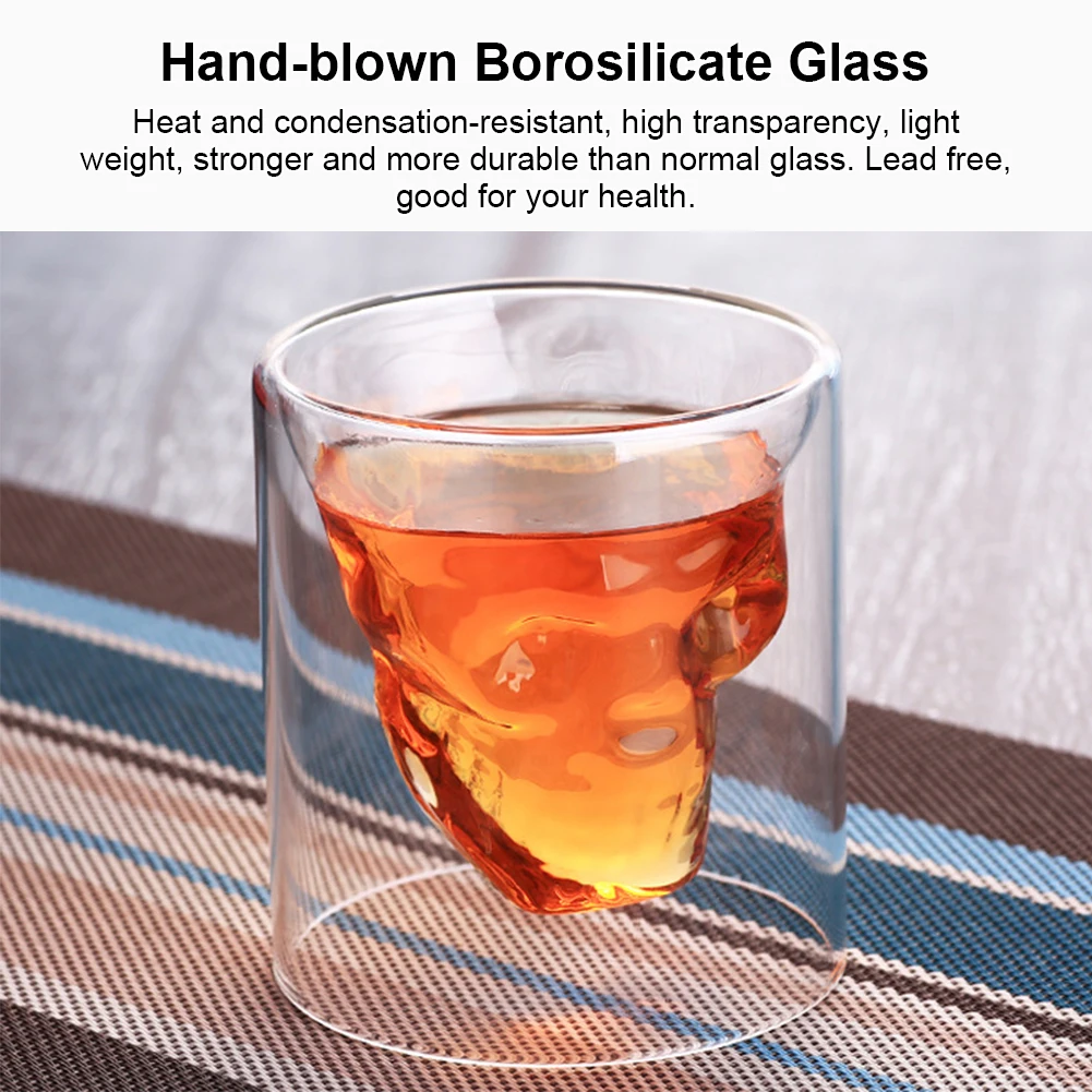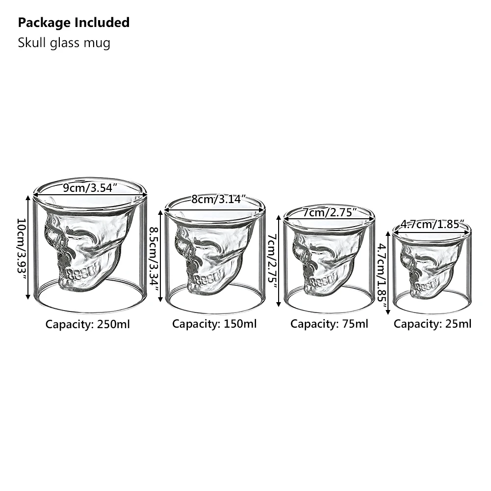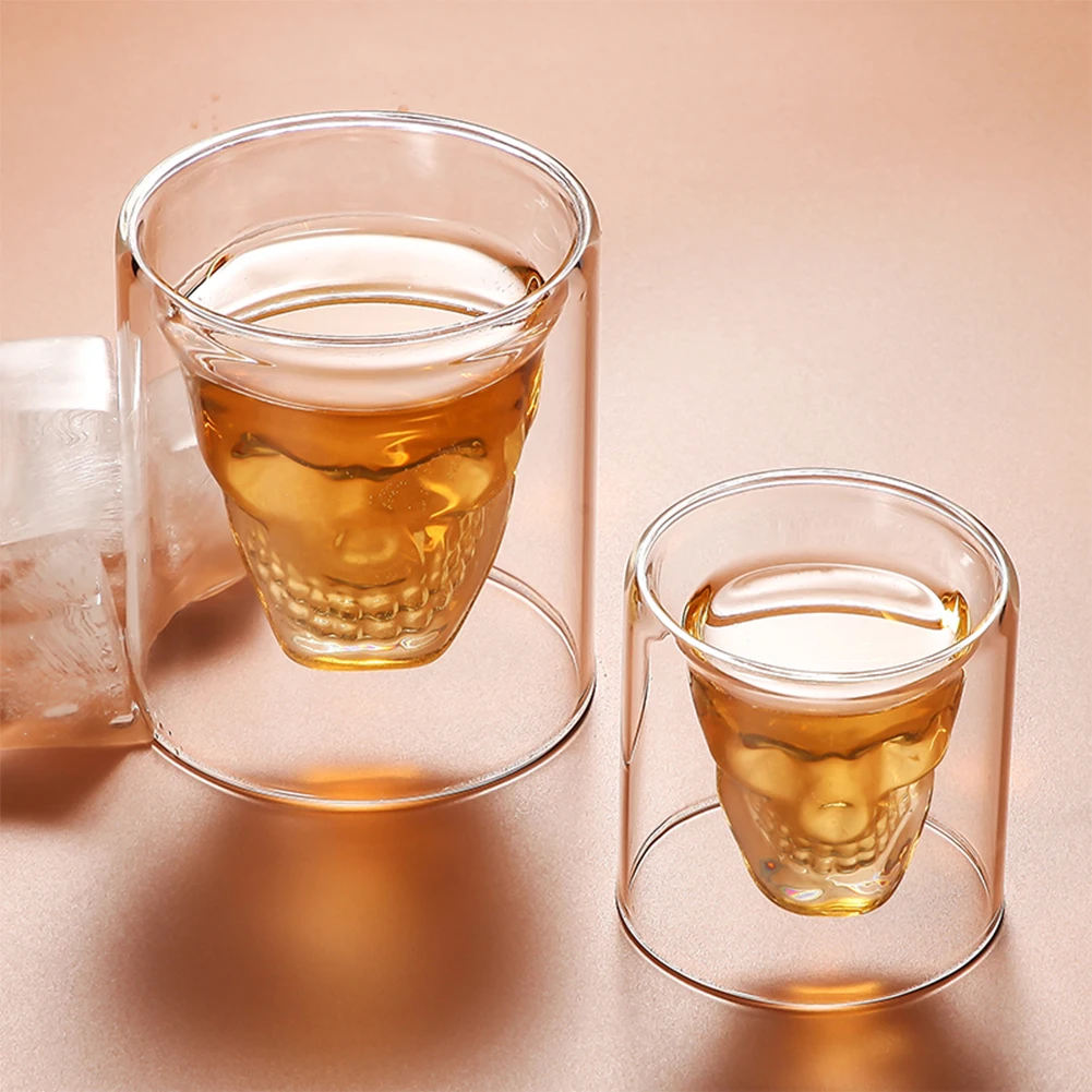 Стеклянная кружка с черепом, винный бокал, кружка, стеклянная кружка для латте, кофе, виски, прозрачная стеклянная водка, питья, бара, клуба, стеклянная кружка с двойными стенками, 25-250 мл