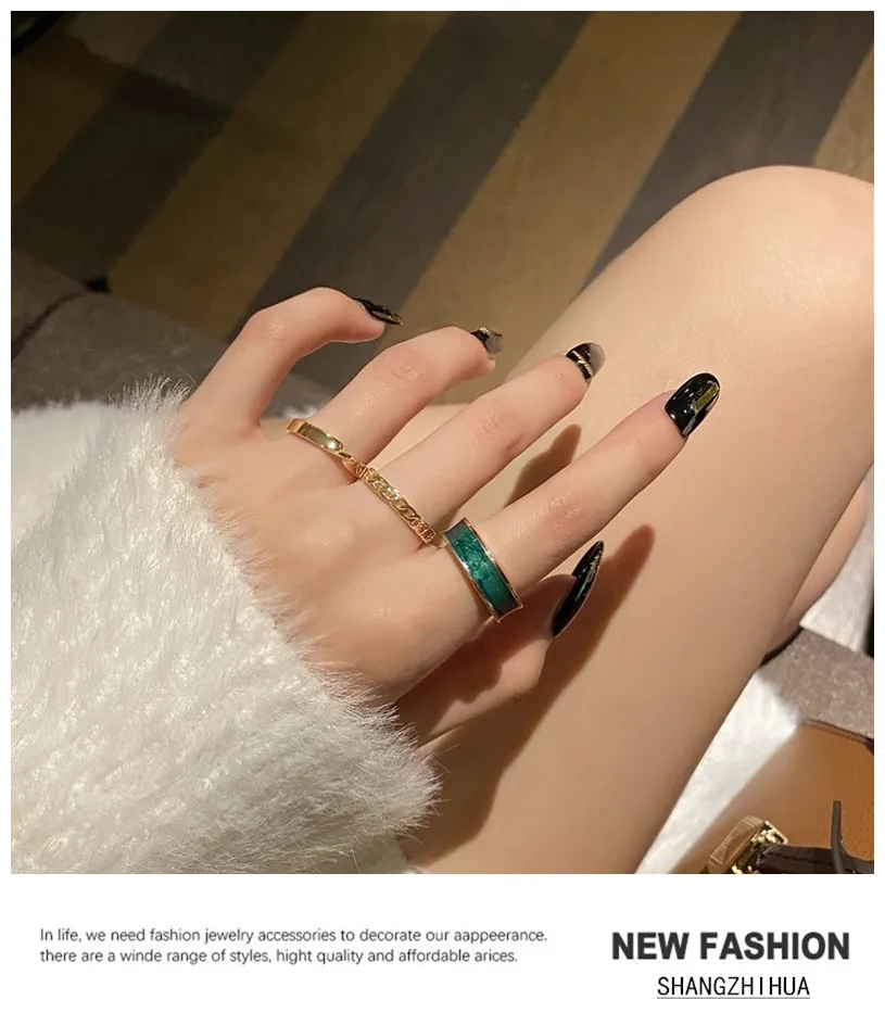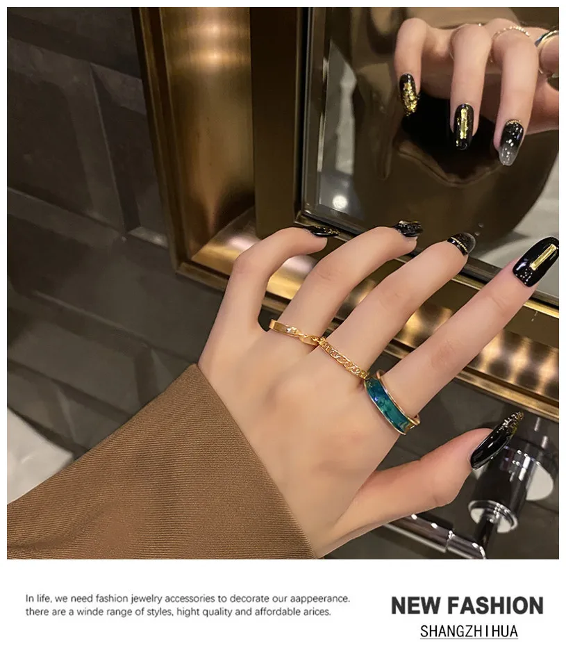 Готические открытые кольца в виде зеленой капли с металлическим блеском для женщин, модные ювелирные изделия 2021, необычные свадебные украшения