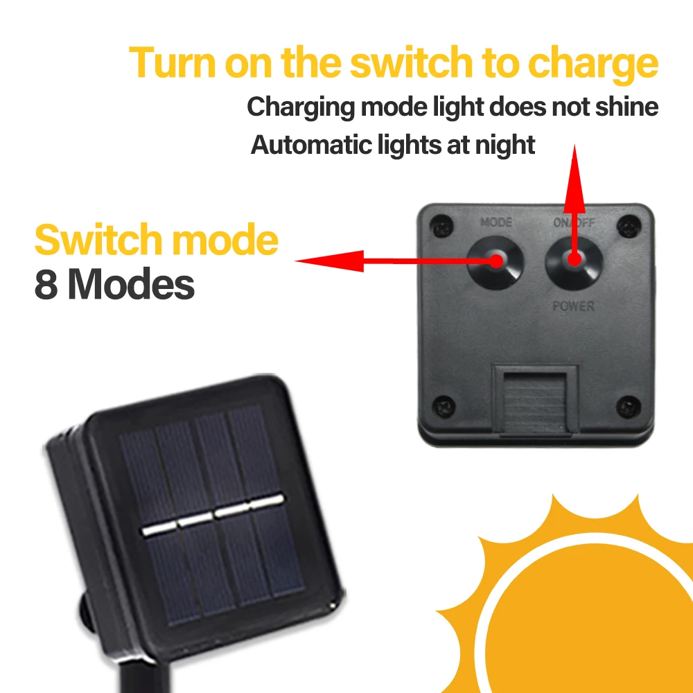 Уличная светодиодная гирлянда на солнечной батарее, уличный садовый шнурок для комнат, водонепроницаемые лампы на солнечной батарее для рождественского декора, 8 режимов работы
