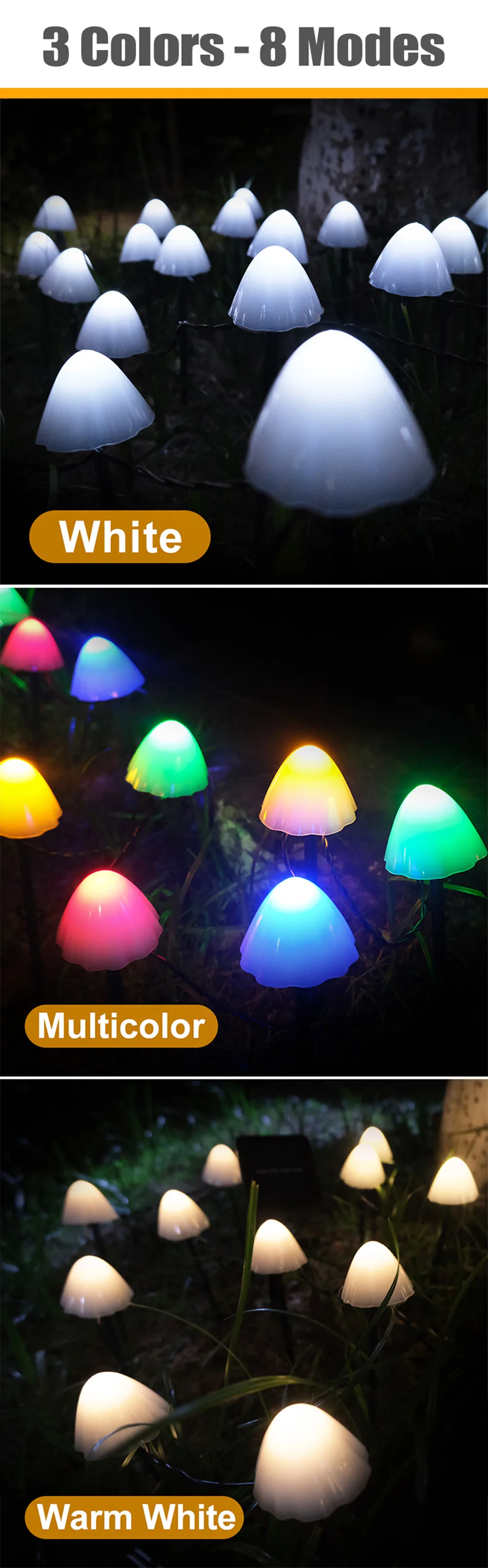 【Энергосбережение от солнечной энергии грибовидной формы освещения 】: без проводов, без счетов за электричество и без розеток. Просто поместите солнечную панель на солнце, чтобы зарядить ее. Модернизированная солнечная панель: светильник может работать в течение 8-12 часов после полной зарядки. Примечание: в тех случаях, когда наступает зима, из-за недостатка солнца светильник, светильник строка может оказаться недостаточно энергии. Пожалуйста, поместите переднюю часть солнечной панели под прямыми солнечными лучами, чтобы убедиться, что она получает достаточно энергии.【Безопасно и удобно 】: Просто поместите светильник на солнечной батарее на открытом воздухе и в прямой солнечный светильник, держите переключатель «Вкл»-автоматически заряжайте в течение дня, и автоматически включается в темноте. Примечание: Из-за низкой начальной энергии, это может обеспечить вам только освещение в течение 1-2 часов, что является нормальным. Пожалуйста, удерживайте кнопку включения при получении солнечной энергии и убедитесь, что на передней панели солнечной панели Нет препятствий.【Практичный и простой в установке 】 этот наружный декоративный светильник легко установить, зафиксировать или разместить в любом месте по мере необходимости. Гибкие и практичные, огнетушенные шарики лампы не повлияют на другие шарики лампы.【Обновление и высокая эффективность 】 10/30 светодиодный и 8 рабочих режимов Солнечный садовый светильник s, более длительный срок службы батареи, более великолепный грибной светильник s, более водонепроницаемый чип, это окружающий светильник, который можно использовать везде.【Простой и красивый 】 простая и креативная форма гриба-последняя! В чудесную темную ночь, своеобразные грибы излучают красочные цвета, позволяя вам увидеть другой мир!【Широко используемый и высококачественный материал 】: эти огни имеют водонепроницаемый чип, термостойкий и водонепроницаемый. Он имеет длительный срок службы до 3000 часов, которая доставляет товары намного дольше, чем любые другие строки солнечный светильник. Идеальное украшение для сада, лужайки, двора, пейзажа, рождественской елки!