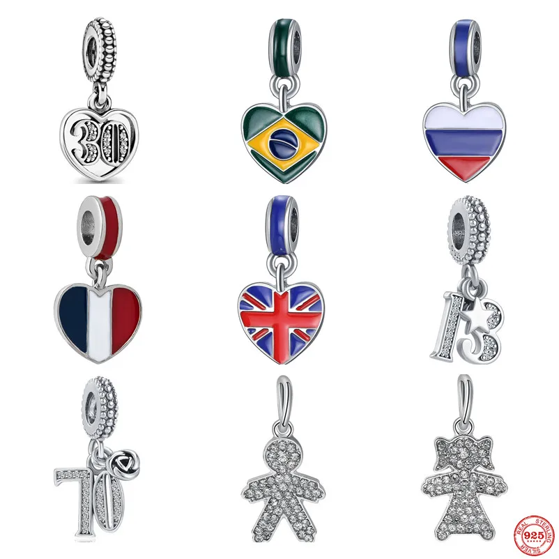 Бесплатная доставка, Европейский, французский, британский, бразильский, русский цвет, бусины соответствуют оригинальным шармам Pandora, серебряный браслет 925, Женские Ювелирные изделия