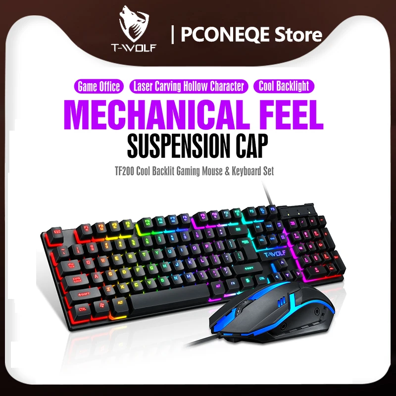 Игровая клавиатура, компьютерная мышь, игровые наборы, комбинированная TF200 Радужная подсветка, USB эргономичная игровая клавиатура, набор Мыши для ПК, ноутбука