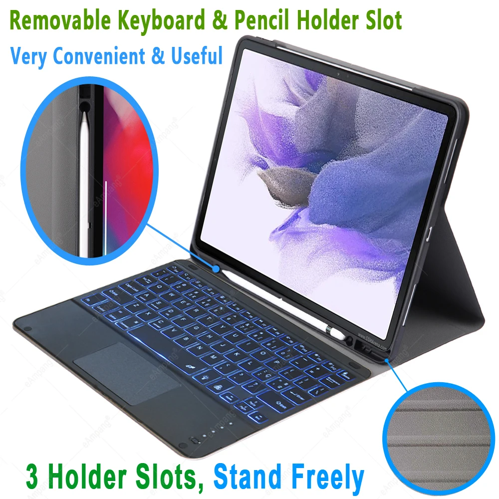 Корейский чехол для клавиатуры с тачпадом на русском и испанском языках для Samsung Galaxy Tab S7 FE, чехол с клавиатурой для Samsung Tab SM-T730