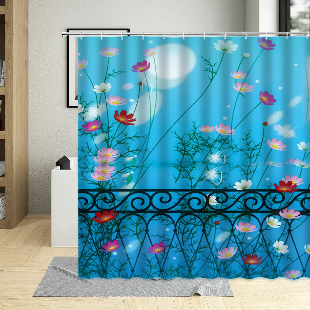 Занавеска для душа с цветочным принтом, s Весенняя декоративная зан...