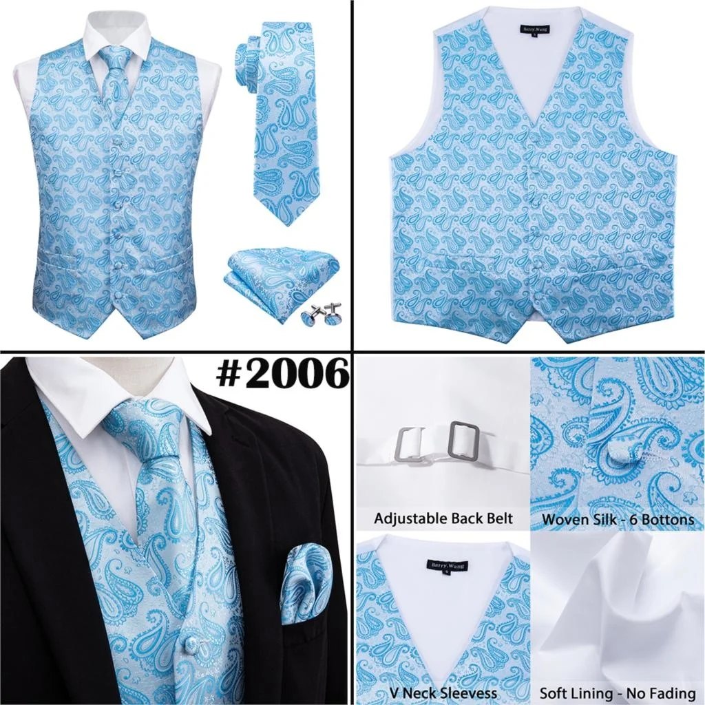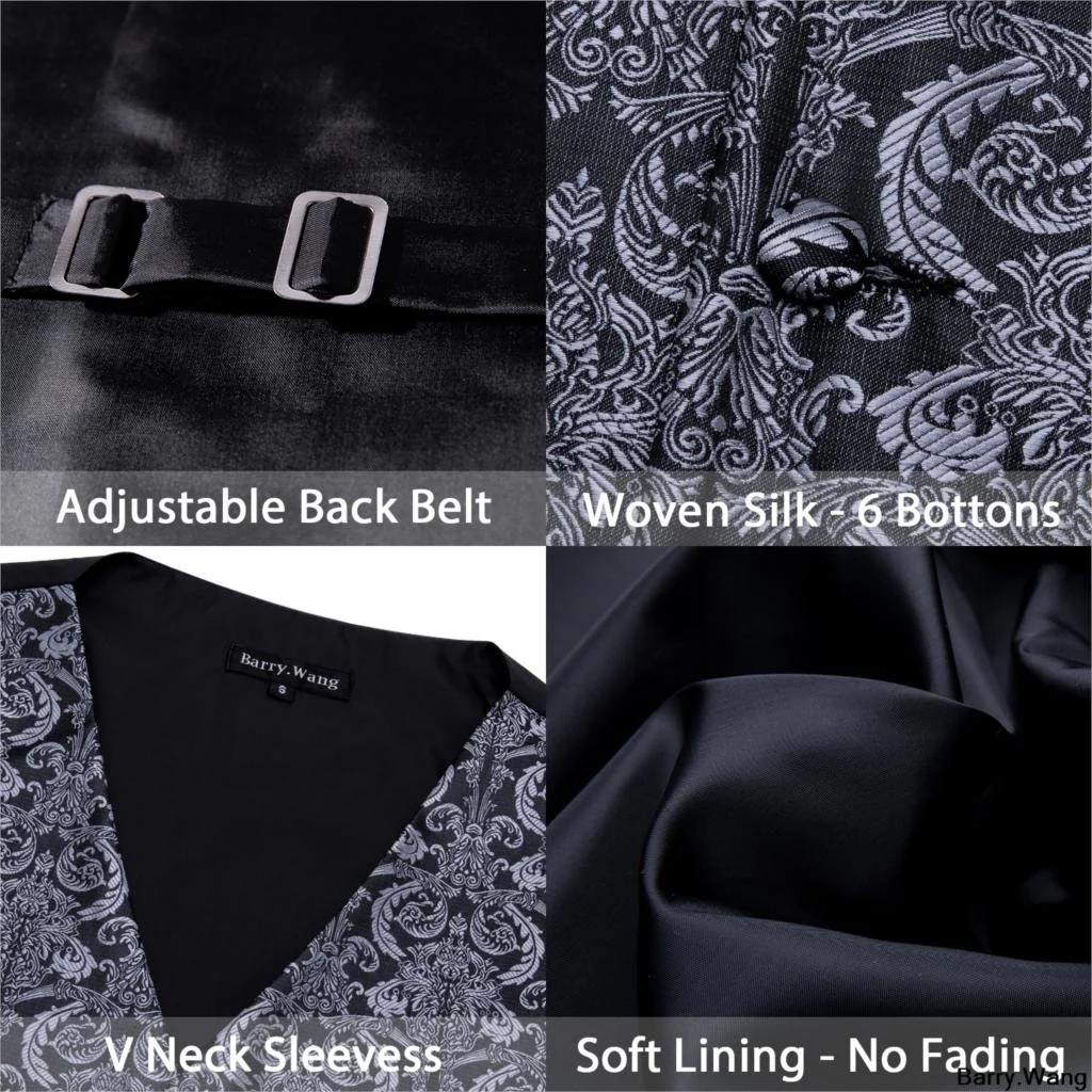 Бренд: Barry.WangСостояние: ручная работаМатериал основной ткани: 100% шелкМатериал подкладки: полиэстерПосылка включает в себя: жилет, галстук, квадратный карманУпаковка: защитная и простая упаковкаЖилет + галстук + квадратный карман. Такой же дизайн, идеально подходит.Повод: Повседневный вид, рабочие, вечерние, свадебные, все сезоны.Размеры этого жилета соответствуют американским размерам. Пожалуйста, обратитесь к нашей информации о размерах в описании товара
