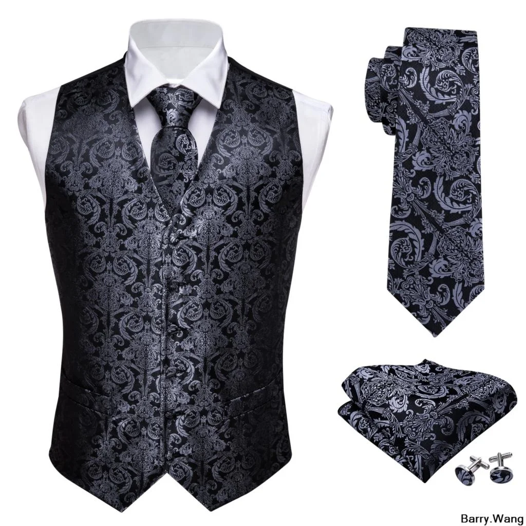 Дизайнерский мужской классический черный Жаккардовый жилет с рисунком Пейсли, жилет, платок, галстук, жилет, стиль Барри Ван