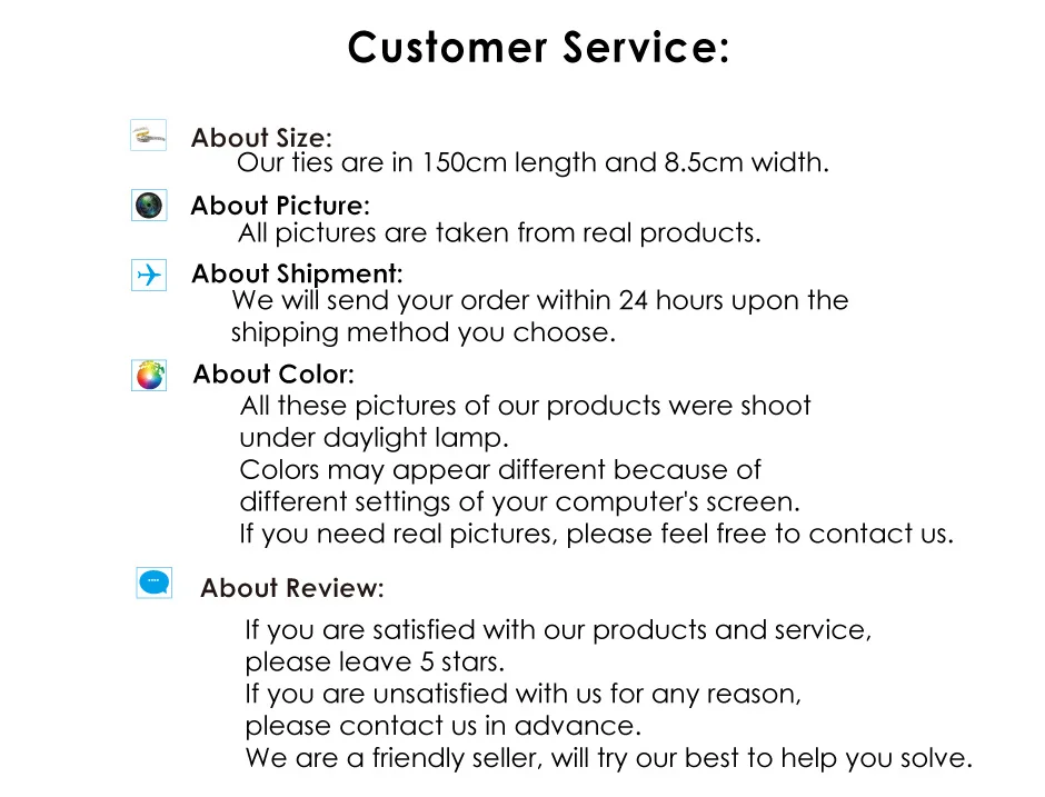 Подкладка хорошего качества делает наши Галстуки тяжелыми и эластичными, которые легко разработаны для идеального узла. Если у вас есть какие-либоВперед вопросы, такие как цвета, бирки, материалы и оптовая торговля,О отзывыСпасибо за постоянную поддержку нашего магазина, мой друг.Мы стремимся улучшить себя с точки зрения обслуживания.Мы будем очень признательны, если вы оставите нам положительные отзывы, что будет большим подспорьем для нас.Если мы чем-то можем помочь, пожалуйста, не стесняйтесь сообщить нам.Тепло.