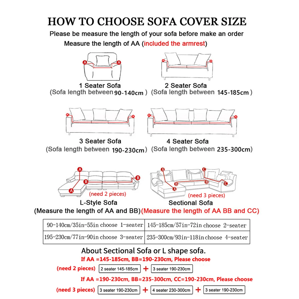4-местный чехол для дивана подходит для большинства диванов длиной до 235-300 см/92-118 дюймов.