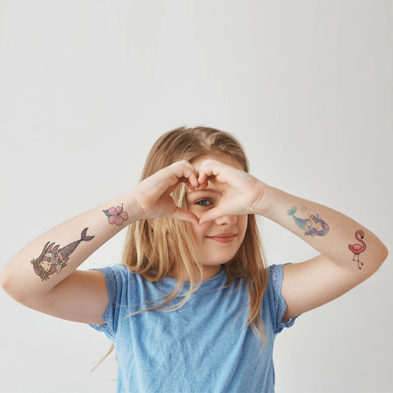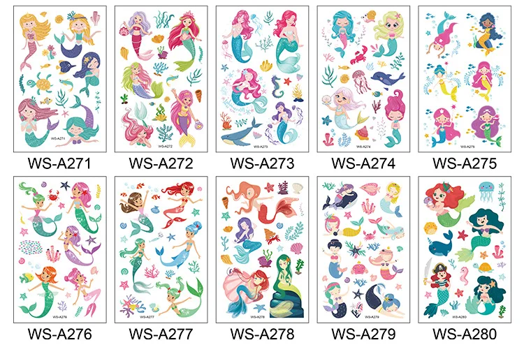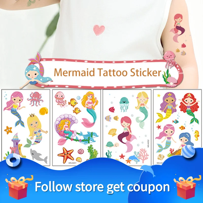 10 шт., детские наклейки на татуировку, временные водонепроницаемые, переносные, с защитой от пота, Мультяшные, с изображением Русалочки, милые, забавные, подарочные, детские игрушки