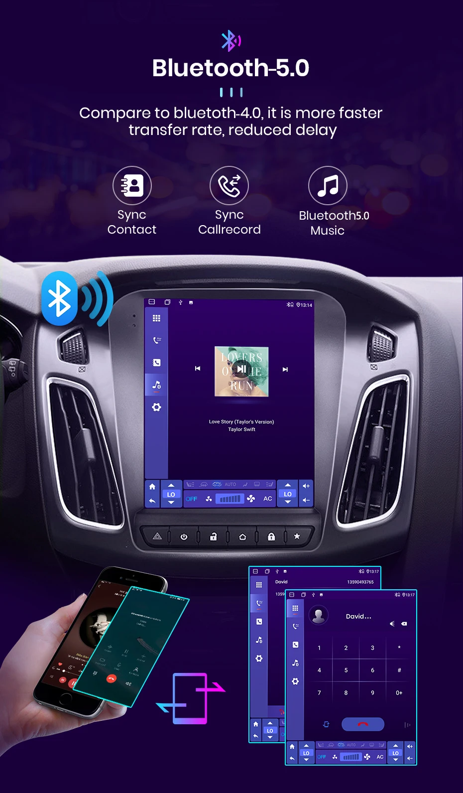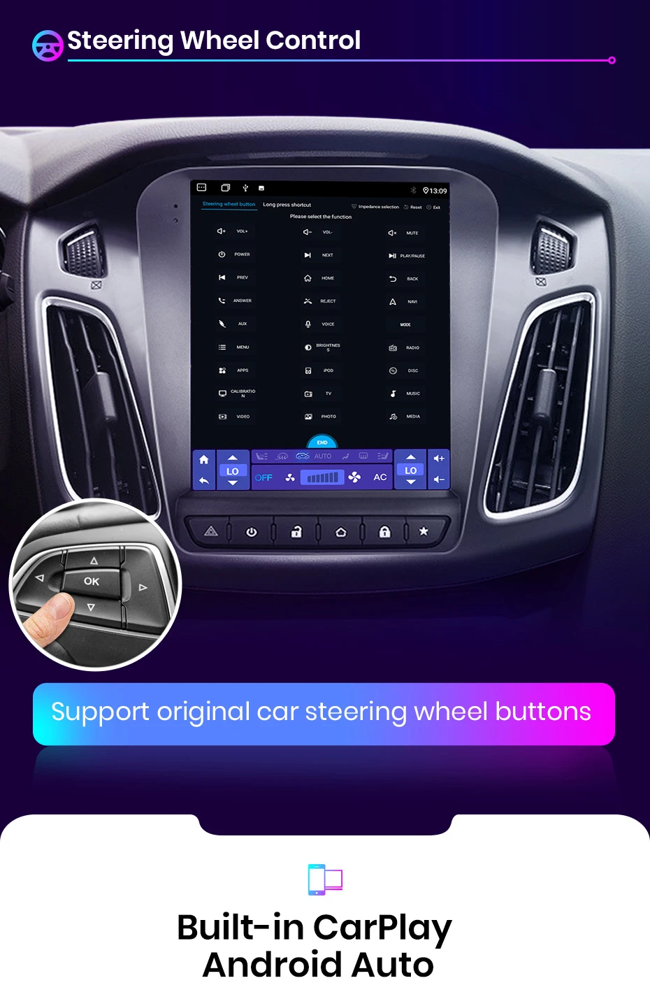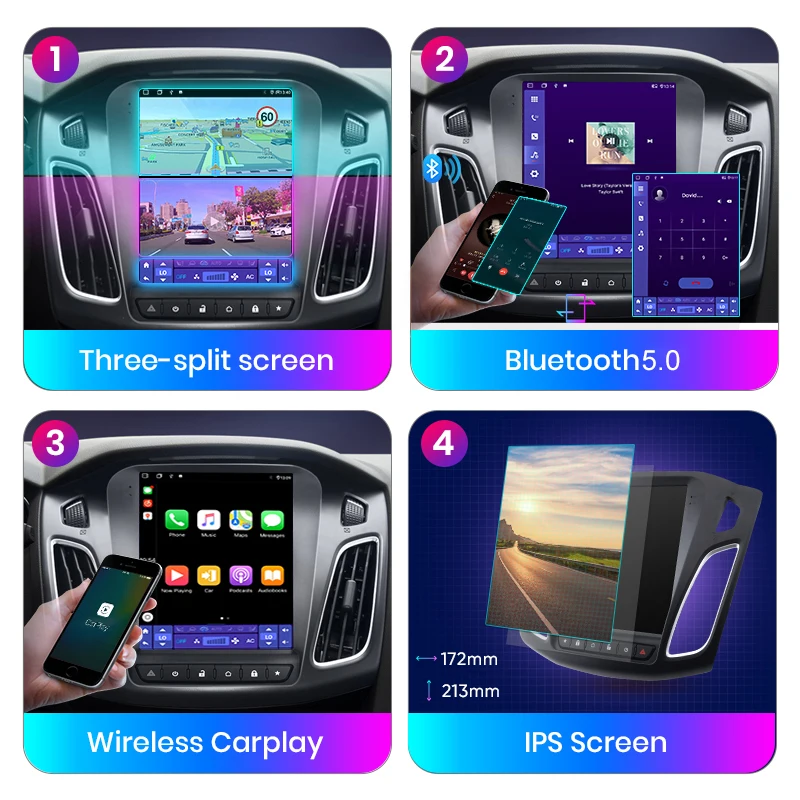 Встроенный беспроводной Carplay и Android авто функция, для беспроводной Carplay, вам просто нужно подключить к телефону с bluetooth; И для Android Auto, вам нужно только использовать usb-кабель для соединения телефона и радио, управления и управления мобильными телефонами через устройство, откройте безопасную жизнь вождения.