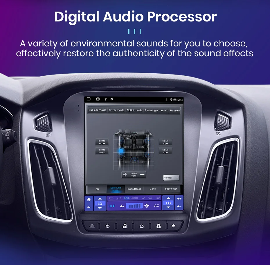 3. Цифровой звуковой процессор DSP с (16*3) регулировкой эквалайзера 48 эквалайзеров для лучшей музыки. Это не только звук, но и высококачественная стереосистема. Улучшите качество звука, улучшите басы и получите высококачественные звуковые эффекты.