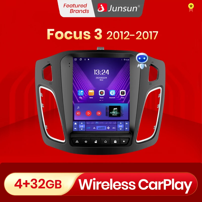 Junsun для Tesla Style Android Auto 4G беспроводной Carplay DSP Магнитола Автомагнитола Мультимедиа автомобиля для Ford Focus MK 3 2012-2017 нет 2 DIN Аудио для авто Автомагнитолы форд фокус 3
