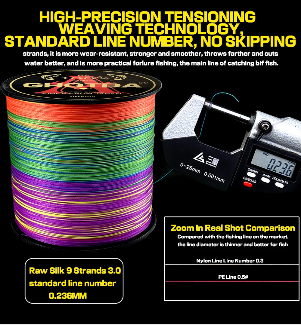Рыболовная леска GHOTDA, 9 нитей, Полиэтиленовая оплетка, устойчива...