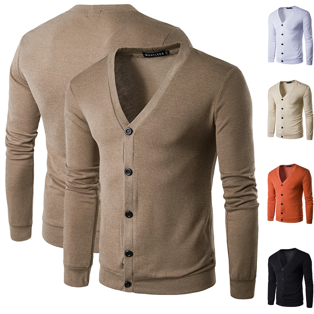 Новый мужской модный однотонный кардиган с V-образным вырезом, свит...
