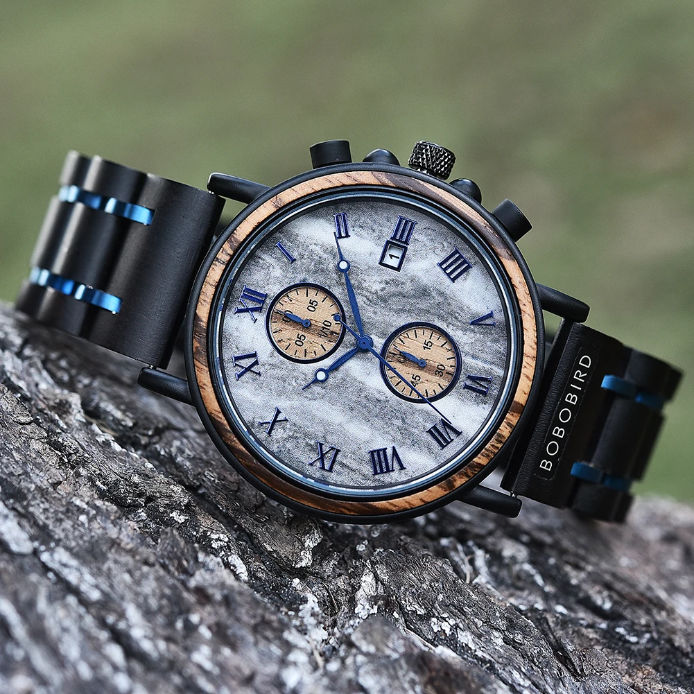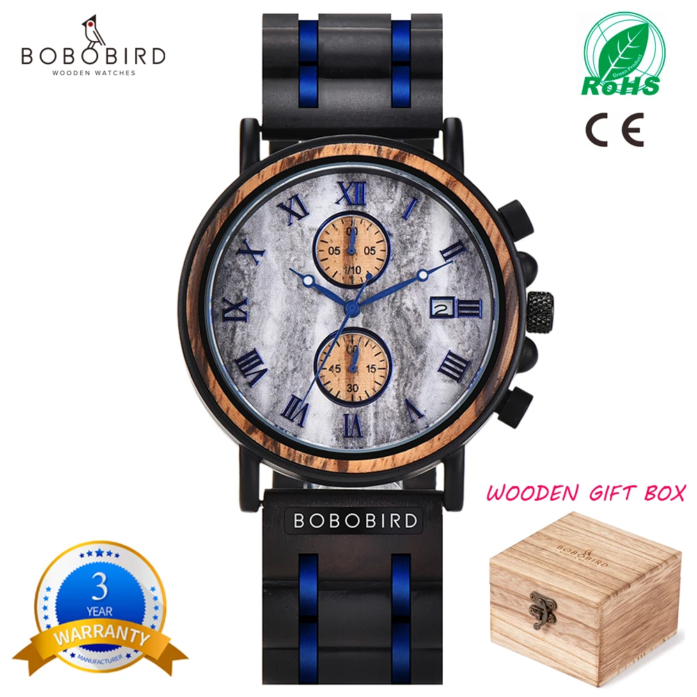 BOBO BIRD, деревянные часы для мужчин, Лидирующий бренд, водонепроницаемые военные часы в деревянной подарочной коробке, светящиеся часы для мужчин, подарок, Прямая поставка, OEM