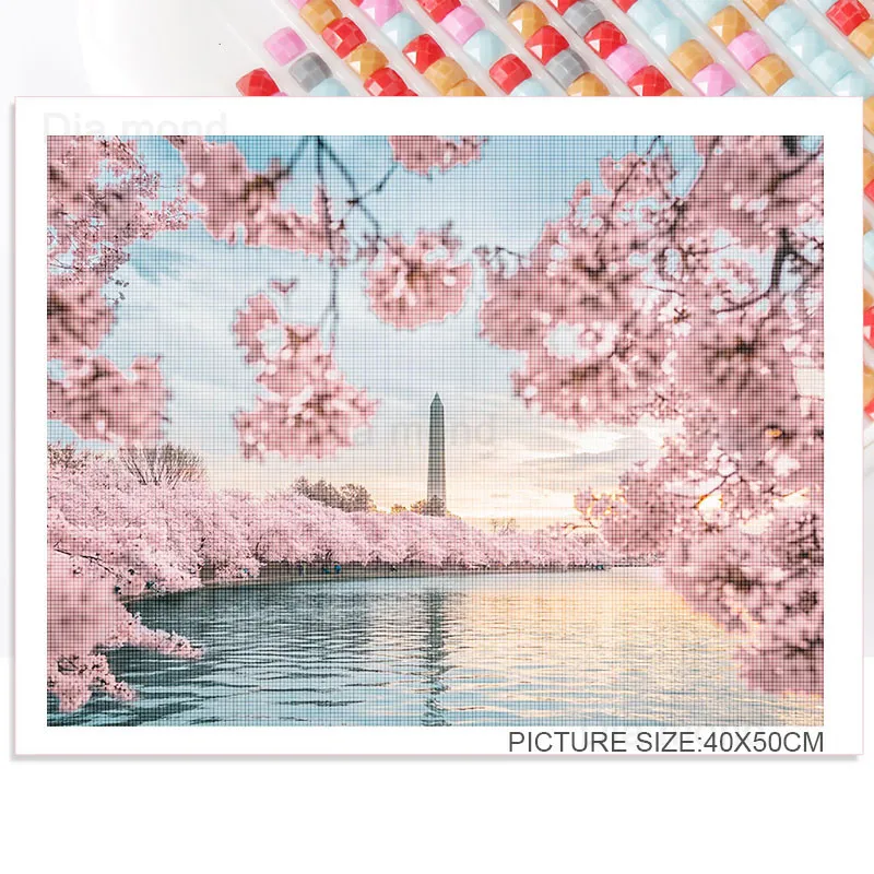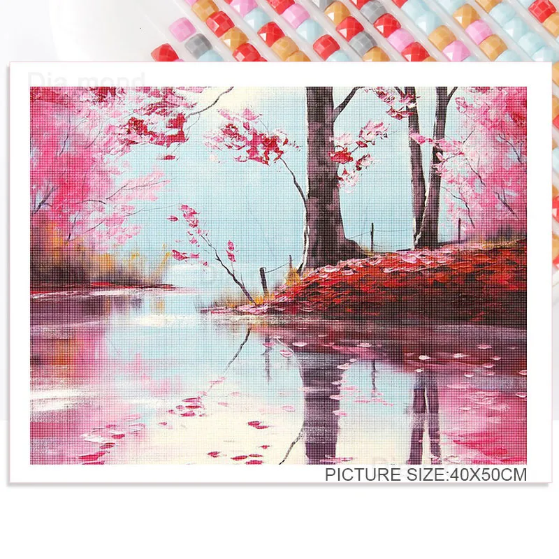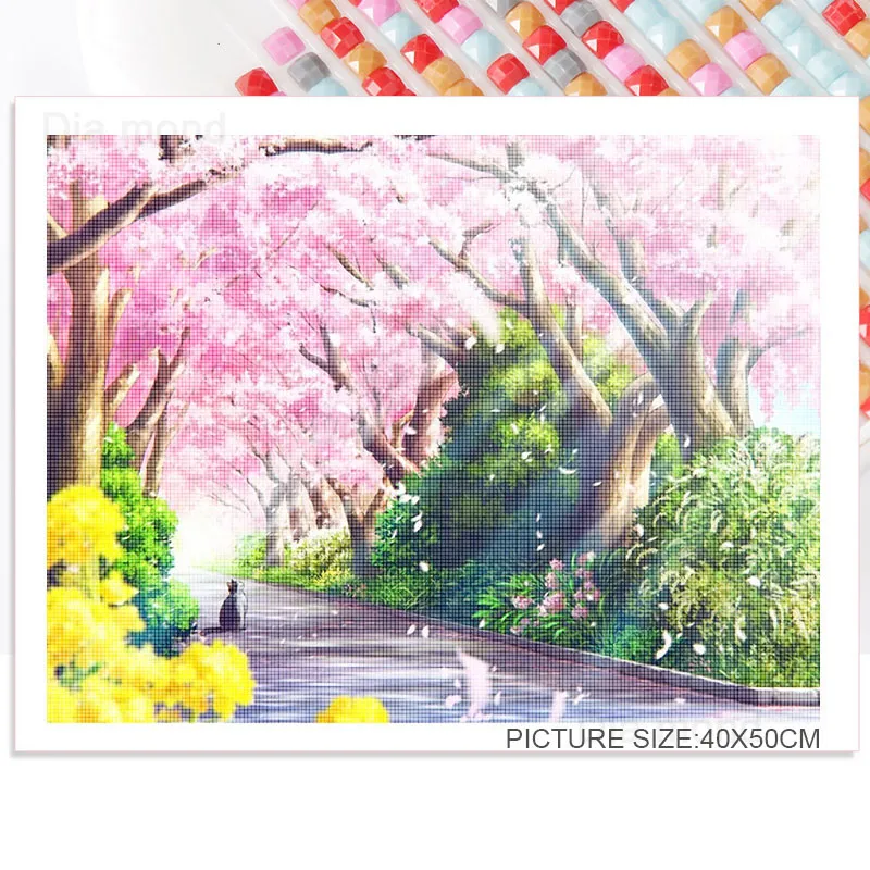 Мультяшное аниме, японский пейзаж, 5D алмазная живопись, вишневые цветы, картина стразы, вышивка, мозаика, домашний декор
